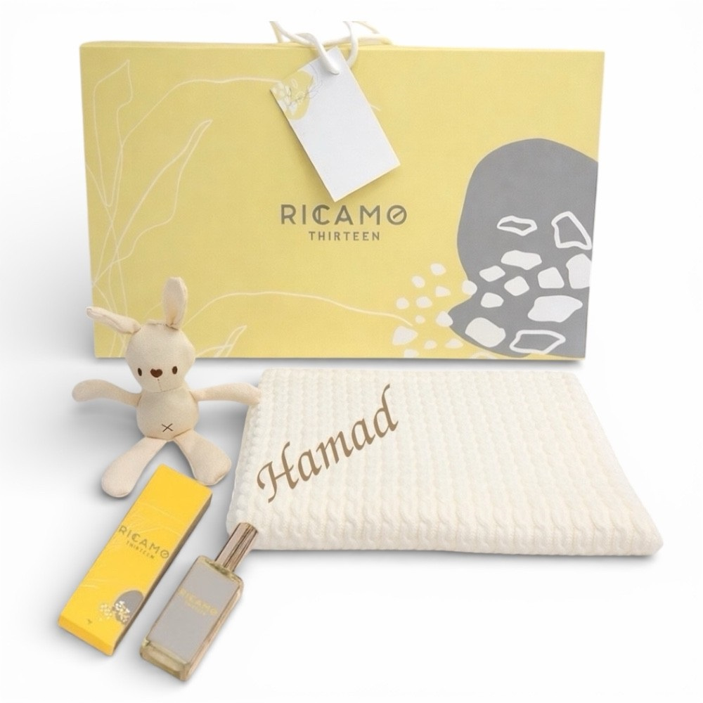 طقم لحاف وارنب قطني مع التطريز وعطر البودر والتغليف.