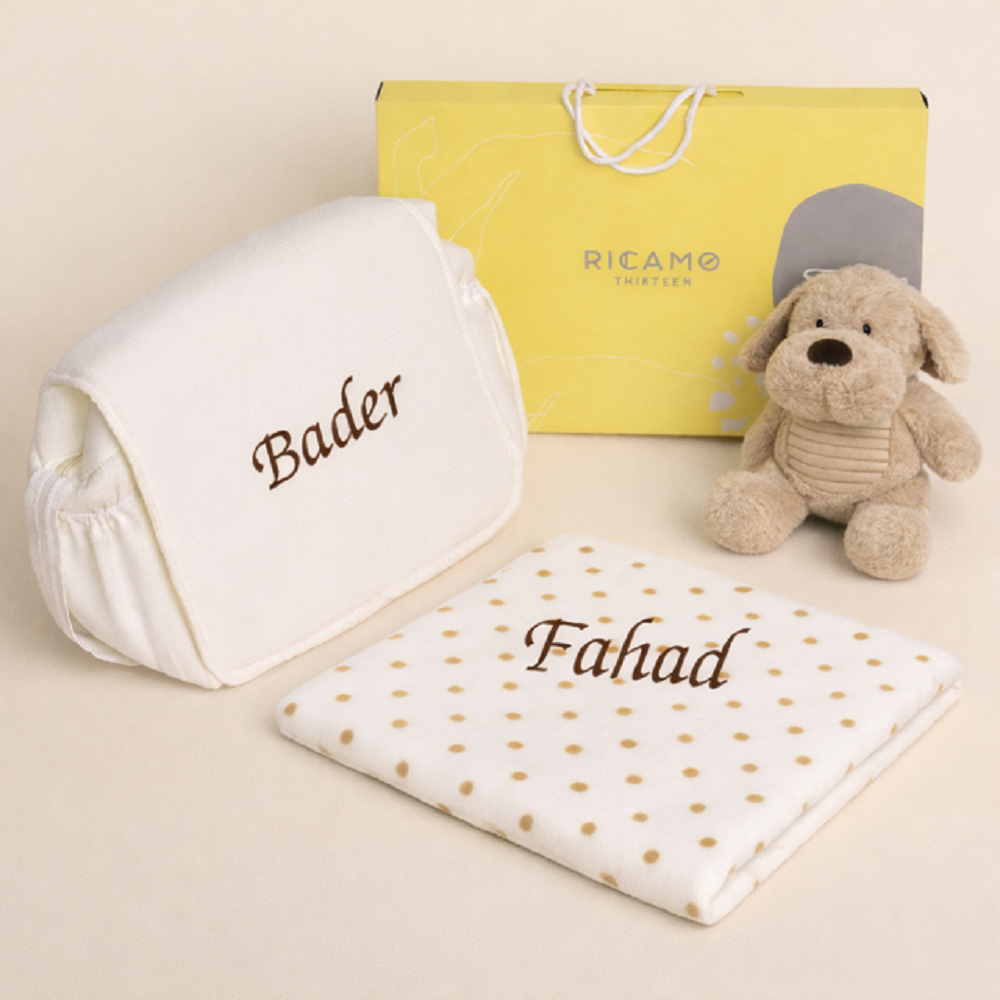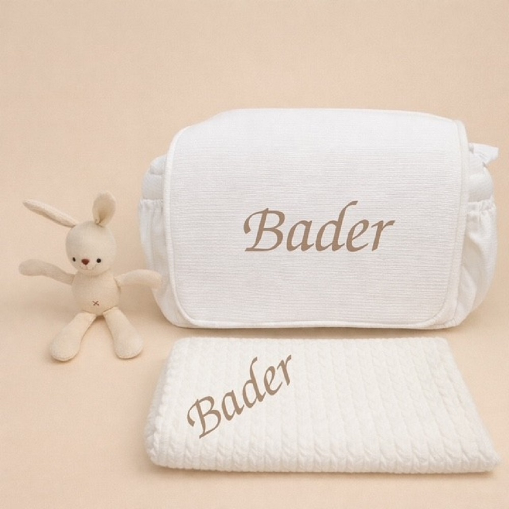 هذا سرير لحديثي الولادة مع وسادة ولحاف صوف. مع تطريز الاسم باللغه العربية او الانجليزية.
