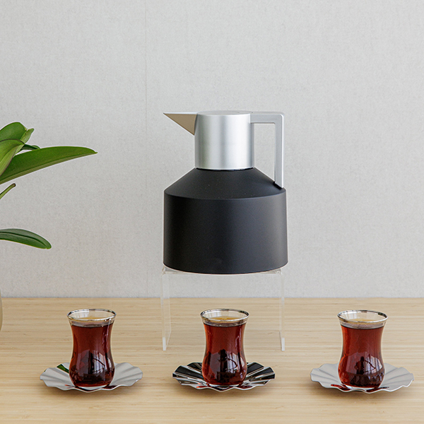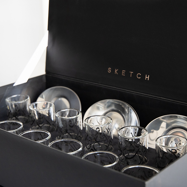 هذا الصندوق الفاخر مع مخمل يحتوي على طقم 6 استكانات وقهوة.