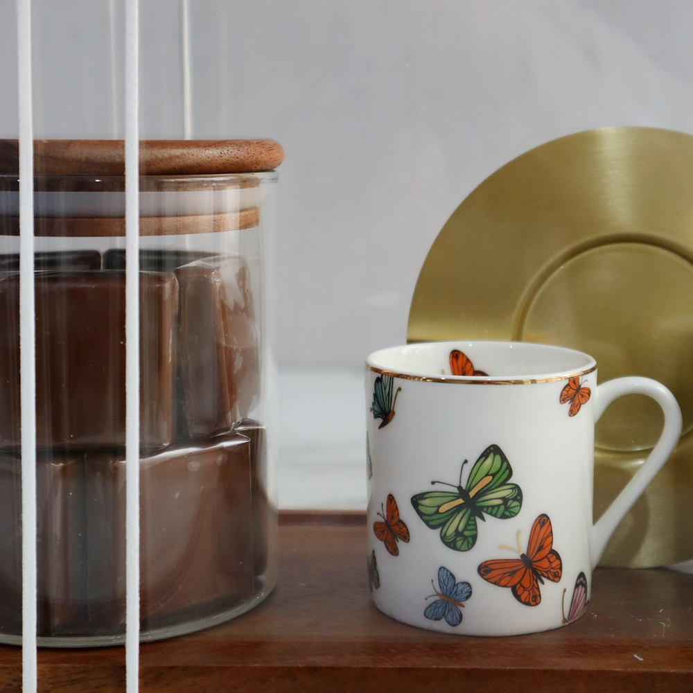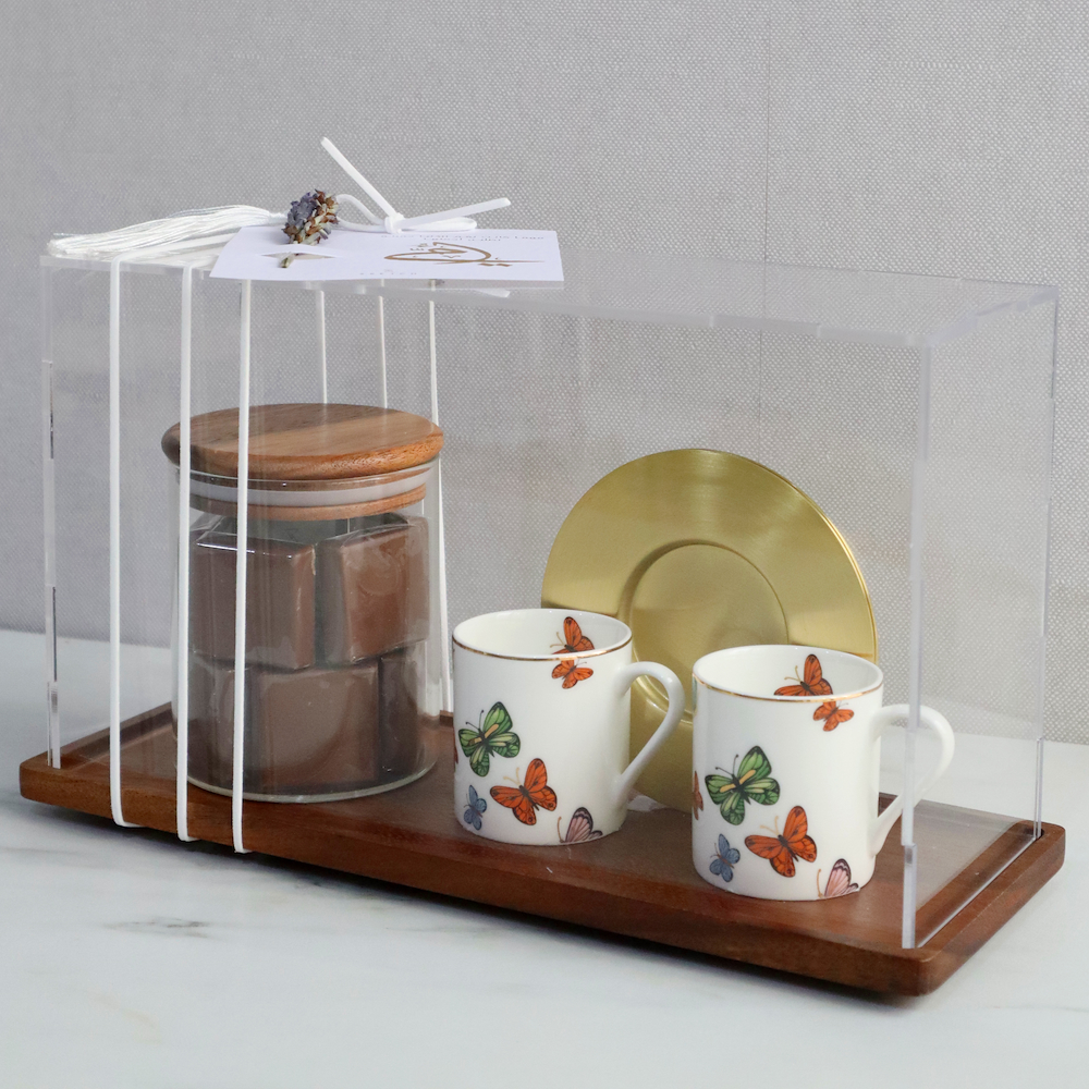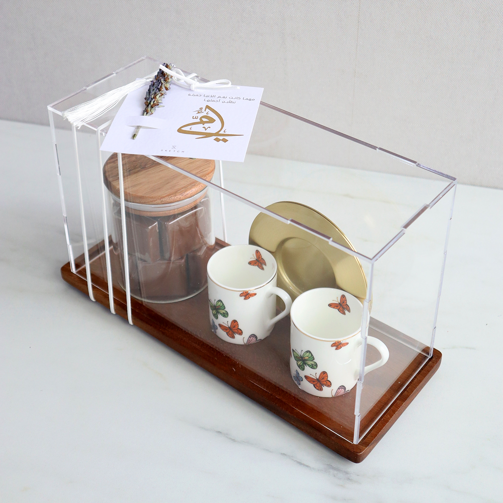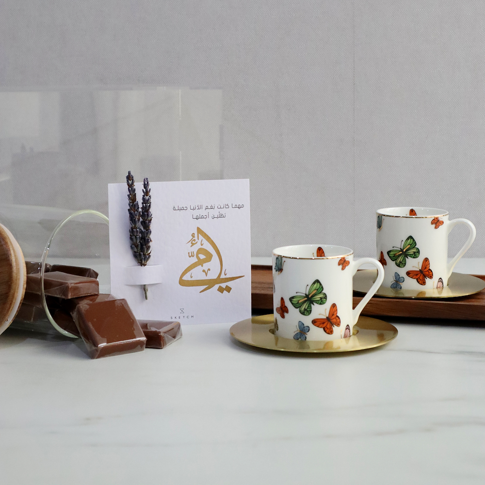 يحتوي طقم هدايا إسبرسو بابيون ليوم الأم على فنجانين بسعة 80 مل مزينين برسومات فراشات ناعمة مع صحون متناسقة، مُرتّب بعناية ليكون هدية مثالية، طقم خالد مثالي لصباح هادئ، محادثات دافئة، ولحظات مليئة بالحب، ليجعل كل رشفة تجربة دافئة وأنيقة للشخص الذي يجعل كل لحظة تشعر وكأنك في المنزل.