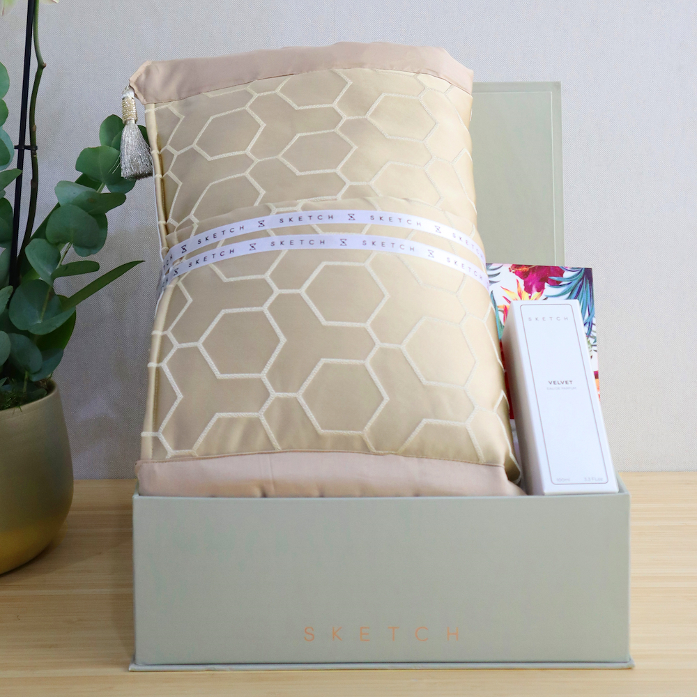 مبخر التروبيكال الخفيف، تأتي الهدية في علبة مع كيس وبوكيه من زهور الجوري.