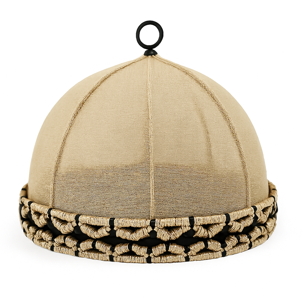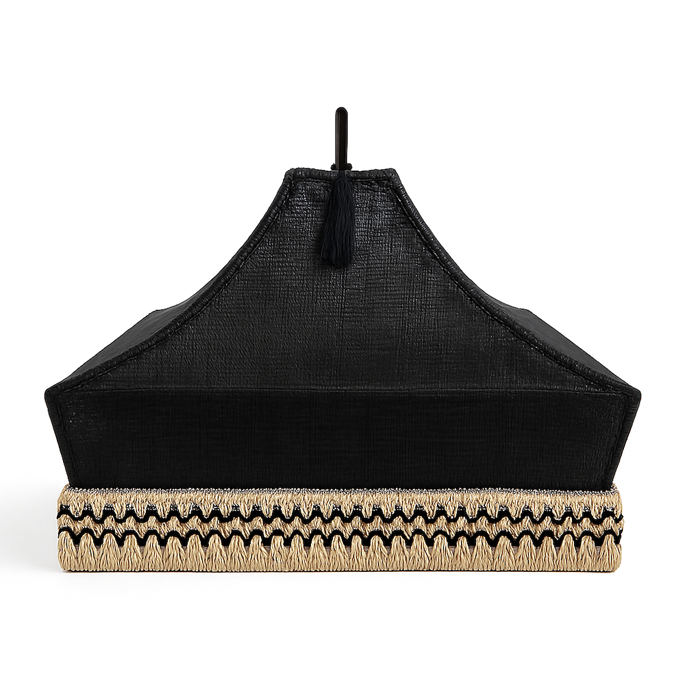 صينية باللون الأسود والبيج مع غطاء بيج بتصميم اللويس.
