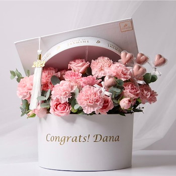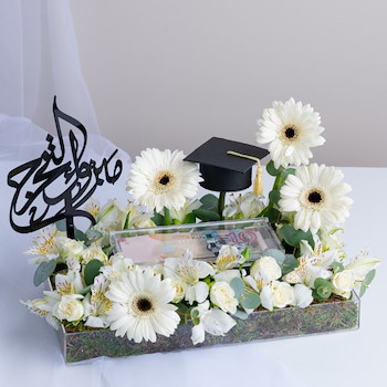 علبة زهور التخرج ابيض