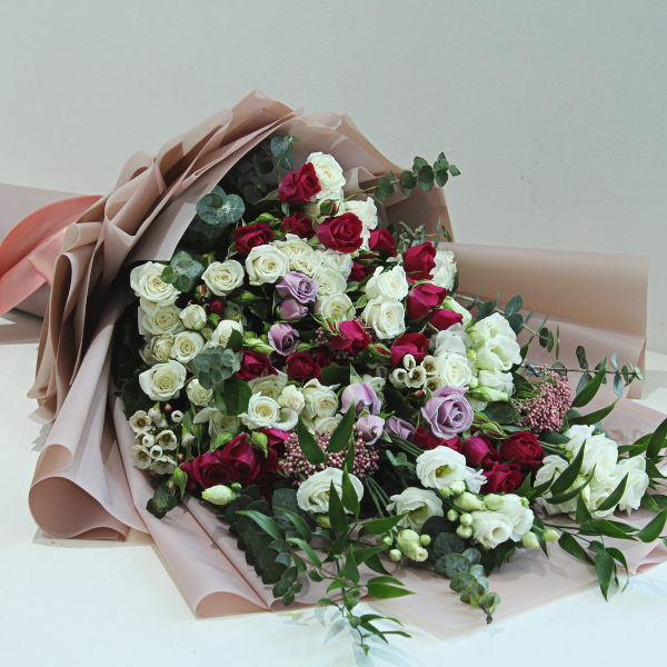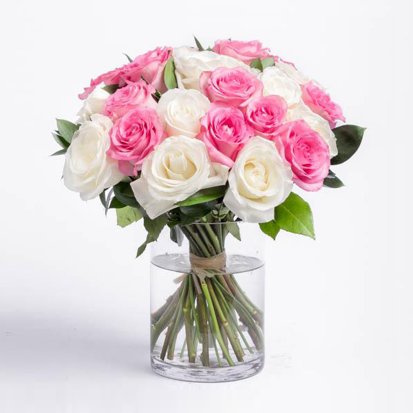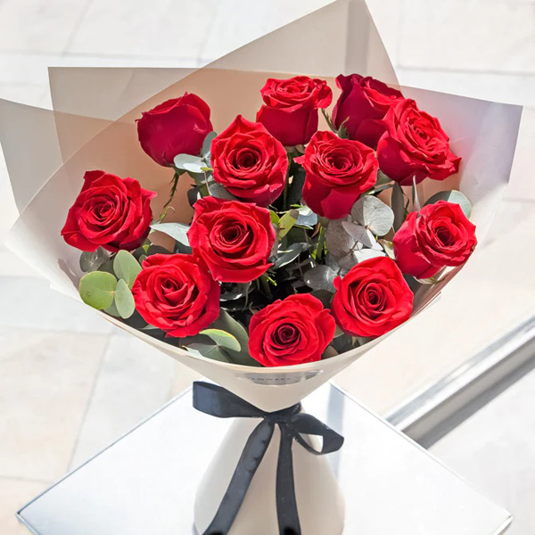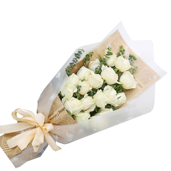 باقة من الورود تحتوي على عدد 18 وردات من الجوري اللون الأبيض بتغليف أنيق ومميز