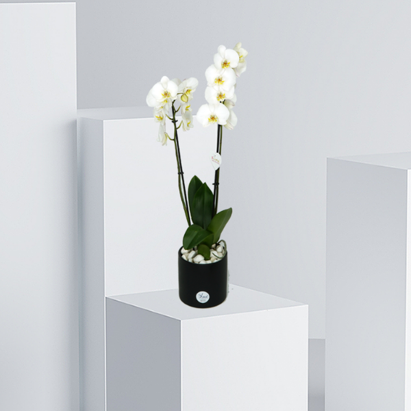 يُعتقد أن زهور الأوركيد هي زهور الحوريات، حيث تتفتح في أعماق قلوب الغابات الاستوائية. حصادها وثقافتها أناس أحبوا الجمال والندرة. زهور الأوركيد هي أحد أنواع الزهور التي يمكن الاستمتاع بها بقدر ما تعتني بها جيداً. تأتي زهور الأوركيد فالاينوبسيس بألوان وأشكال مختلفة ويتم تسويقها بشكل كبير في صناعة الأزهار. تأتي هذه الهدية الجميلة مع نباتات فالاينوبسيس، موضوعة في فازة خزفية سوداء مغطاة بعناية ومزينة بالحصى الأبيض.