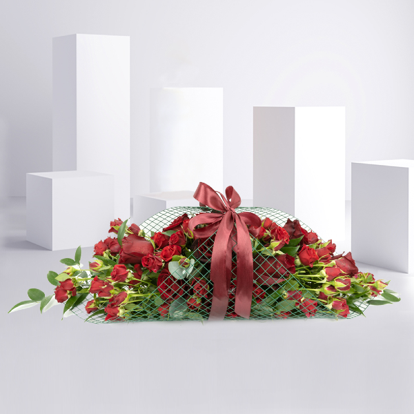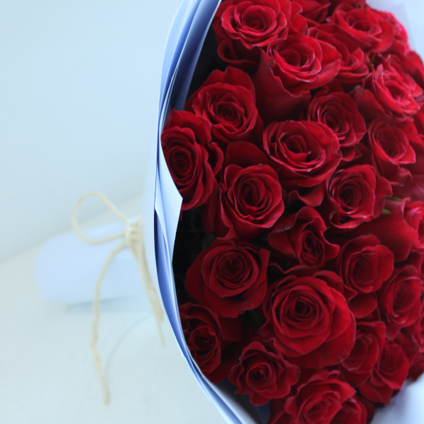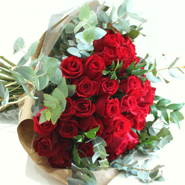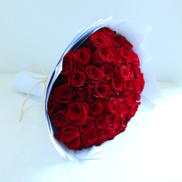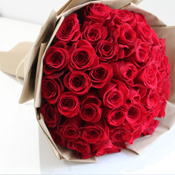 لا يمكنك أن تخطئ أبدًا مع هذه زهور الجوري الحمراء الخالدة، 50 منها ملفوفة بورق أبيض.