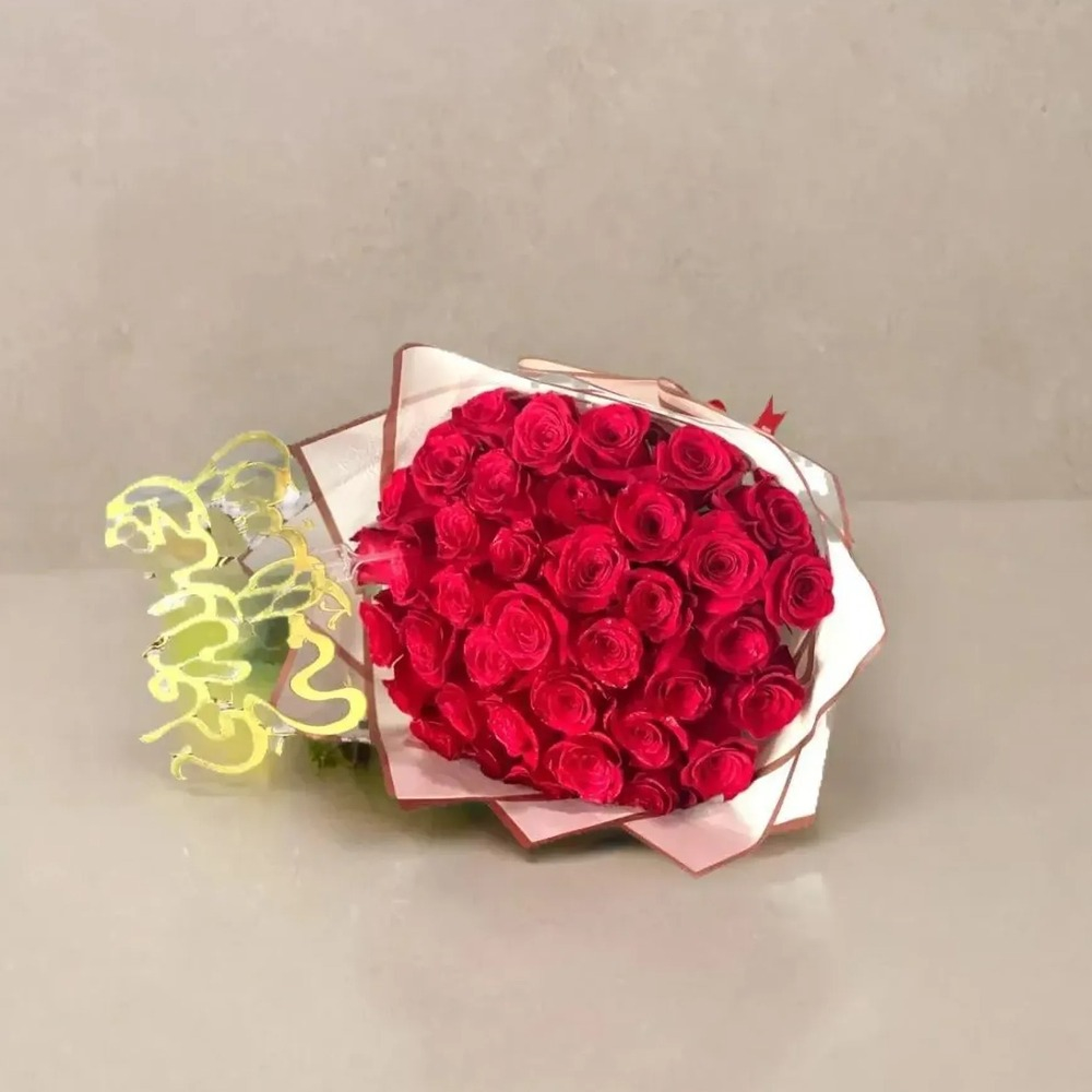 باقة تحتوي على قرنفل وبراسيكا ويوستوما وليمونيوم وجوري وجرس اخضر وماتيولا وجربرا.