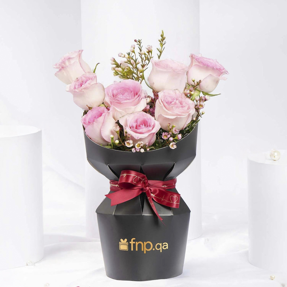 باقة تحتوي على 12 زهرة جوري مختارة بعناية، بما في ذلك 6 زهور جوري وردية و6 زهور جوري أرجوانية تشع جمالاً وسحراً، وىكملها أوراق الأوكالبتوس الطازجة التي تضيف أناقة طبيعية ورائحة رائعة، وكلها ملفوفة بورق عالي الجودة ومثبتة بشريط للحصول على لمسة نهائية مصقولة وأنيقة.