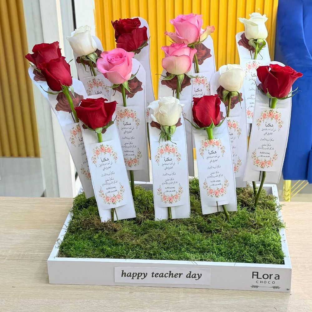 صينية تحتوي على 13 توزيعات من أزهار الجوري.