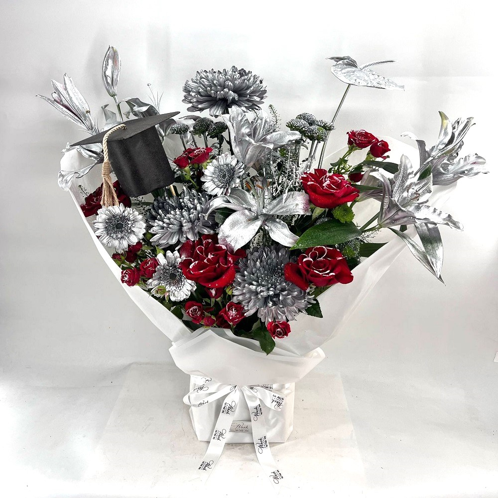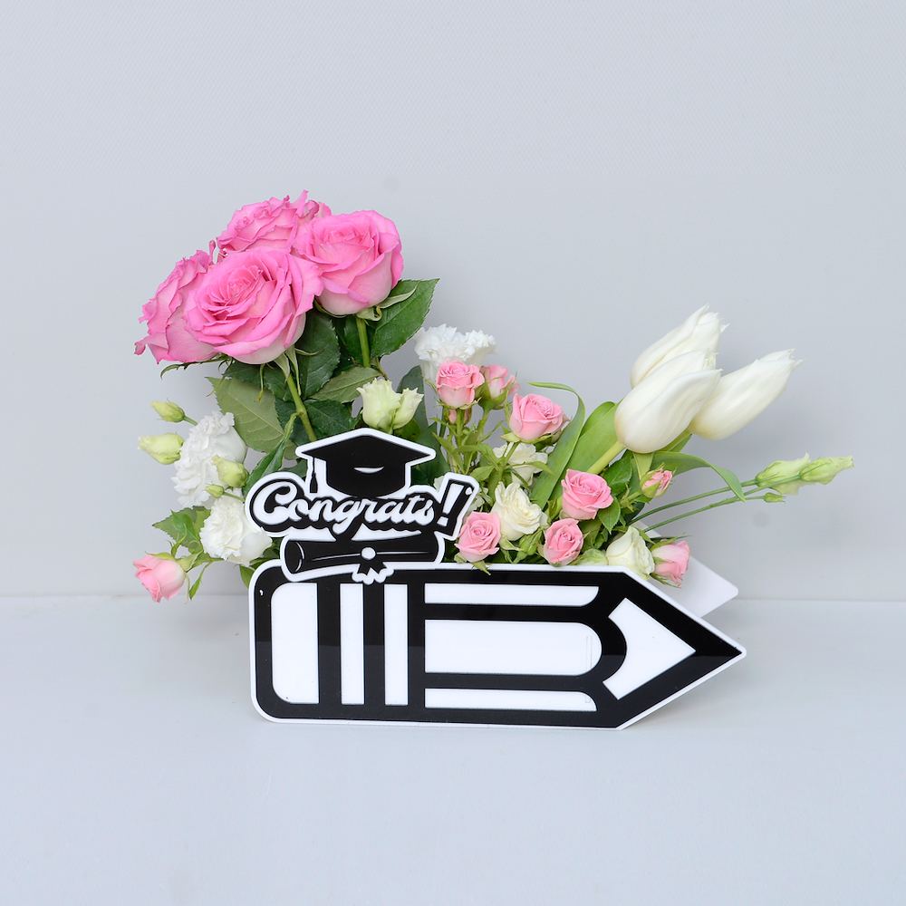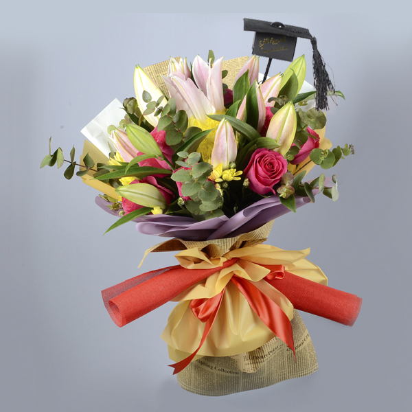 باقة تحتوي على الجوري مع مزيج من الزهور.