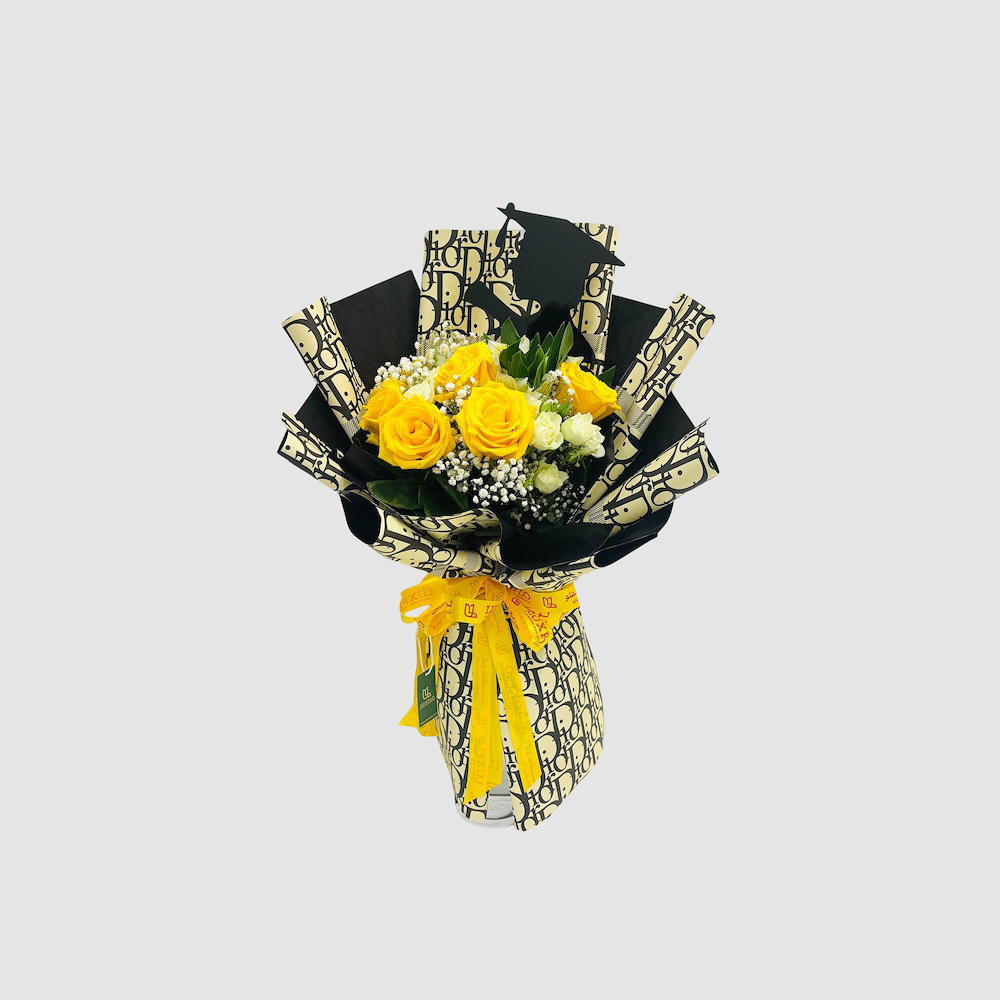 باقة يد تحتوي على الجوري، البيبي جوري والجيبسوفيلا.