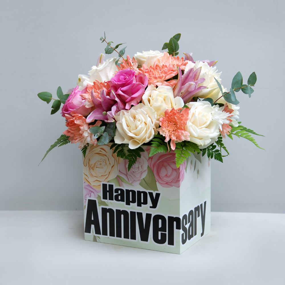 أضف لمسة مميزة إلى ذكرى زواجك مع هذه الباقة الرائعة التي تضم 14 زهرة جوري، 3 زهور كريز، وزهرتي ليلي، مرتبة في صندوق أنيق بمقاس 40 سم × 35 سم. صممت هذه الباقة بعناية فائقة لتجمع بين الأناقة والجمال، وهي هدية مميزة تعبر عن مشاعرك بصدق وروعة.