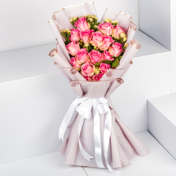 ارسل هذه الهدية المميزة لشخص عزيز عليك لتملأ يومه بالبهجة والحب. هذه الفازة تحتوي على 8 زهور جوري.