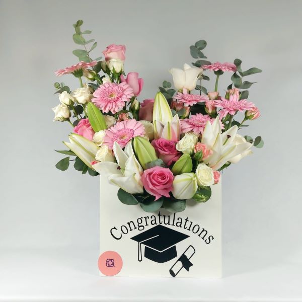 تحتوي هذه الباقة على جوري، كارنيشن وليمونيوم.
