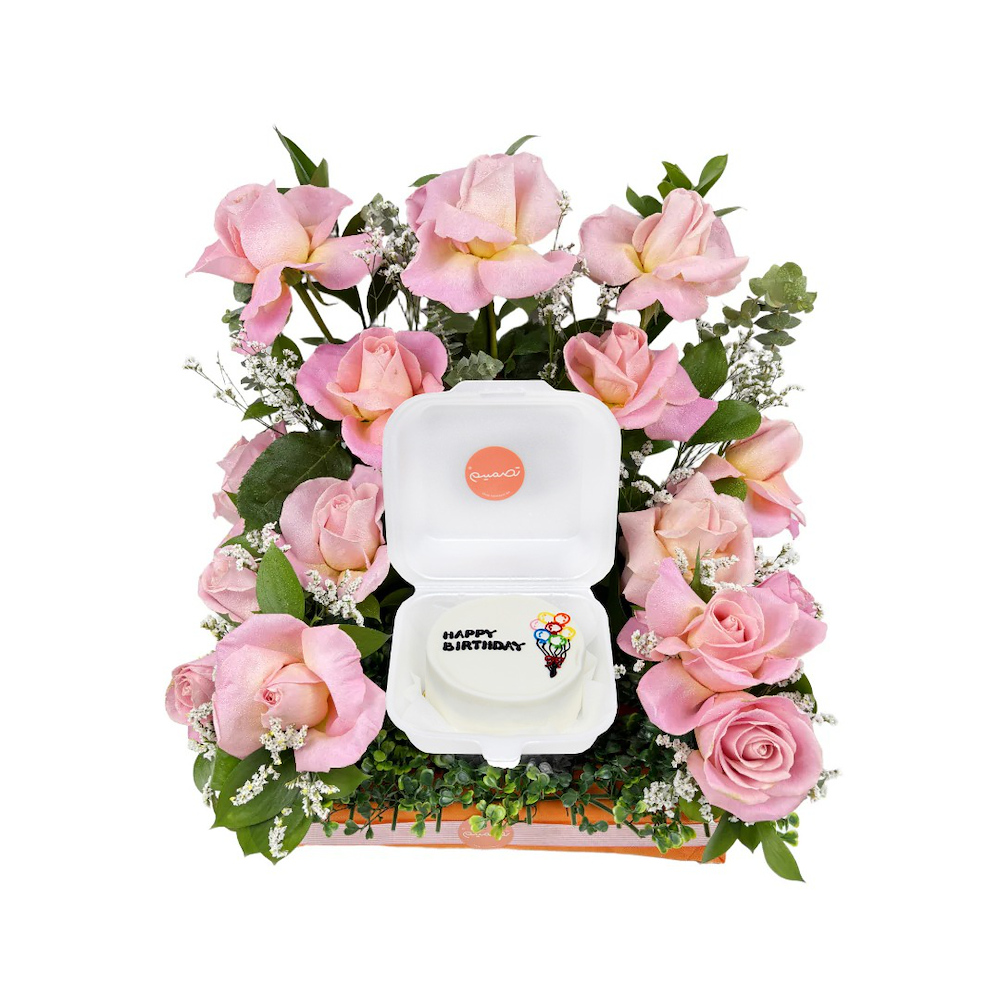 صندوق يحتوي على الجوري مع كيكة.