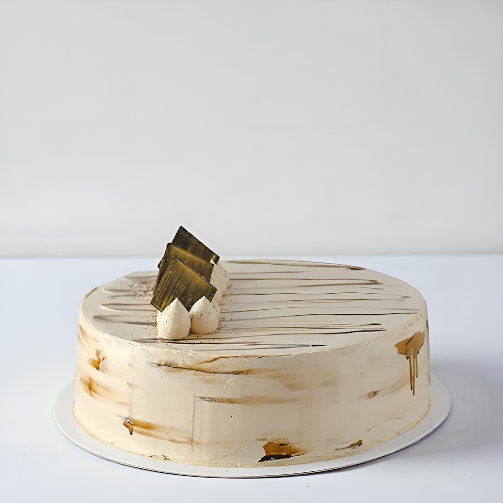 كيكة اسفنجية بنية بنكهة النسكافيه، محشية بكريمة القهوة واللوز، ومغطاة بكريمة القهوة والشوكولاتة السائلة، بحجم 15 دائري تكفي 12 إلى 15 شخص.