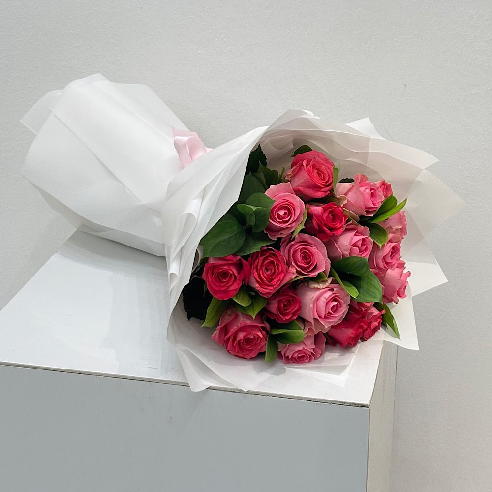 باقة تحتوي على الجوري ومزيج من الزهور.
