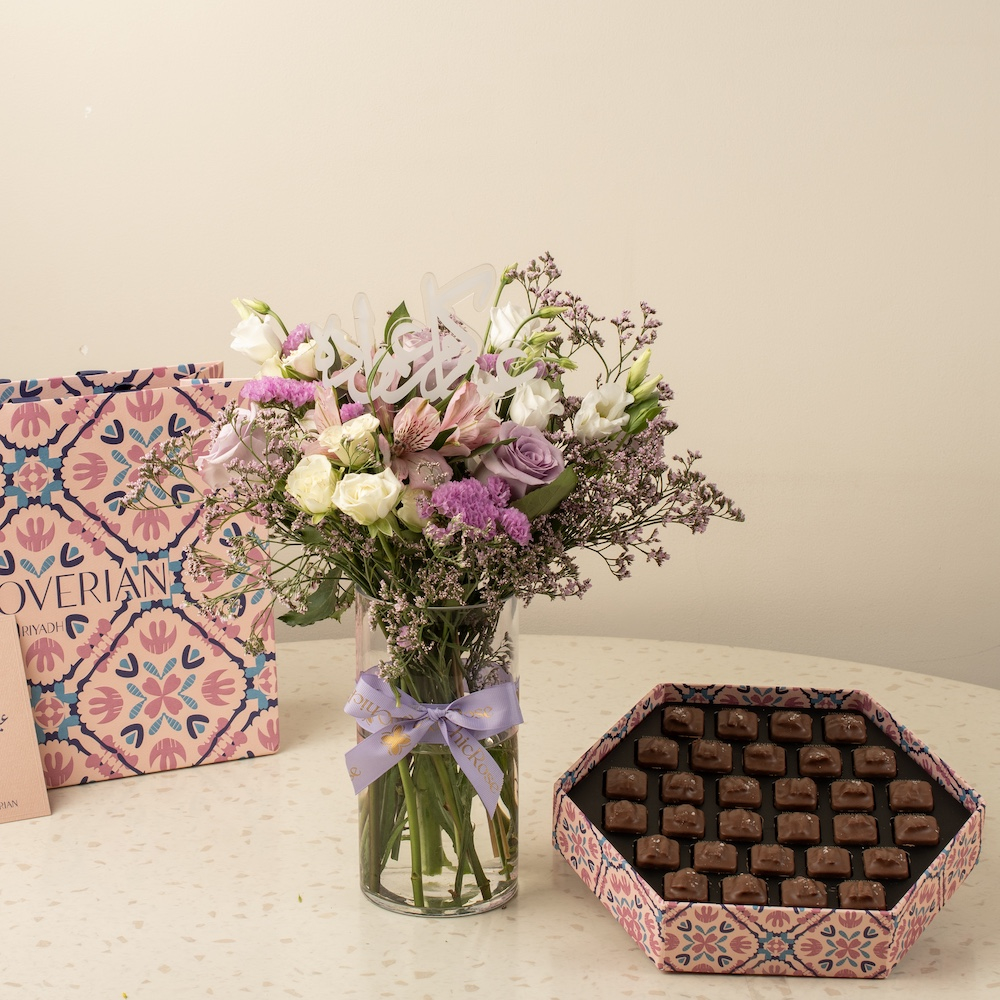 فازة الأزهار الناعمة تحتوي على أزهار البيي روز مع بوكس شوكولاتة من هانوفيريان