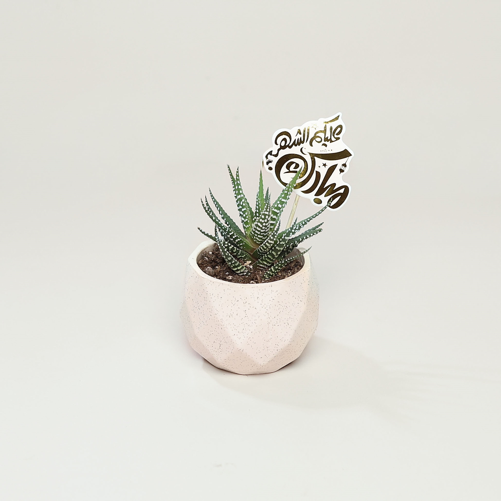 توزيعات رمضانية بصينية خشبية مع 6 نباتات زيبرا.