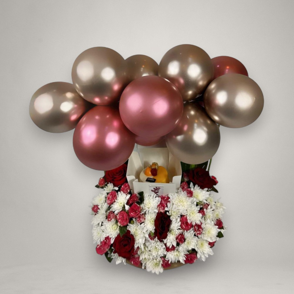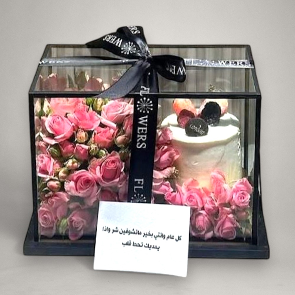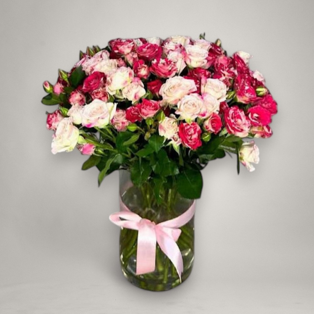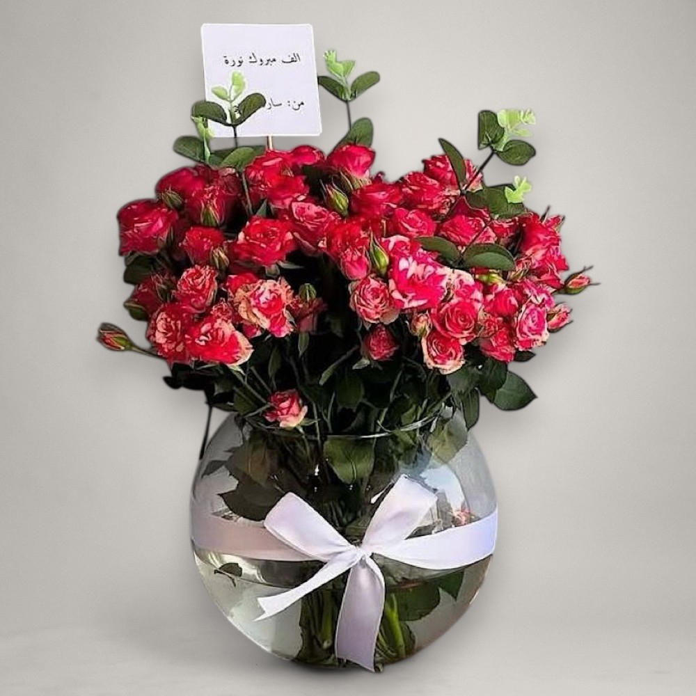 فازة أنيقة مليئة بأزهار البيبي روز.