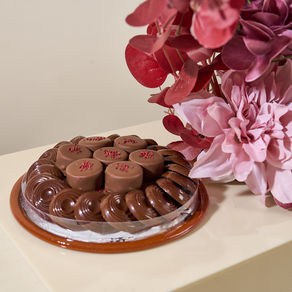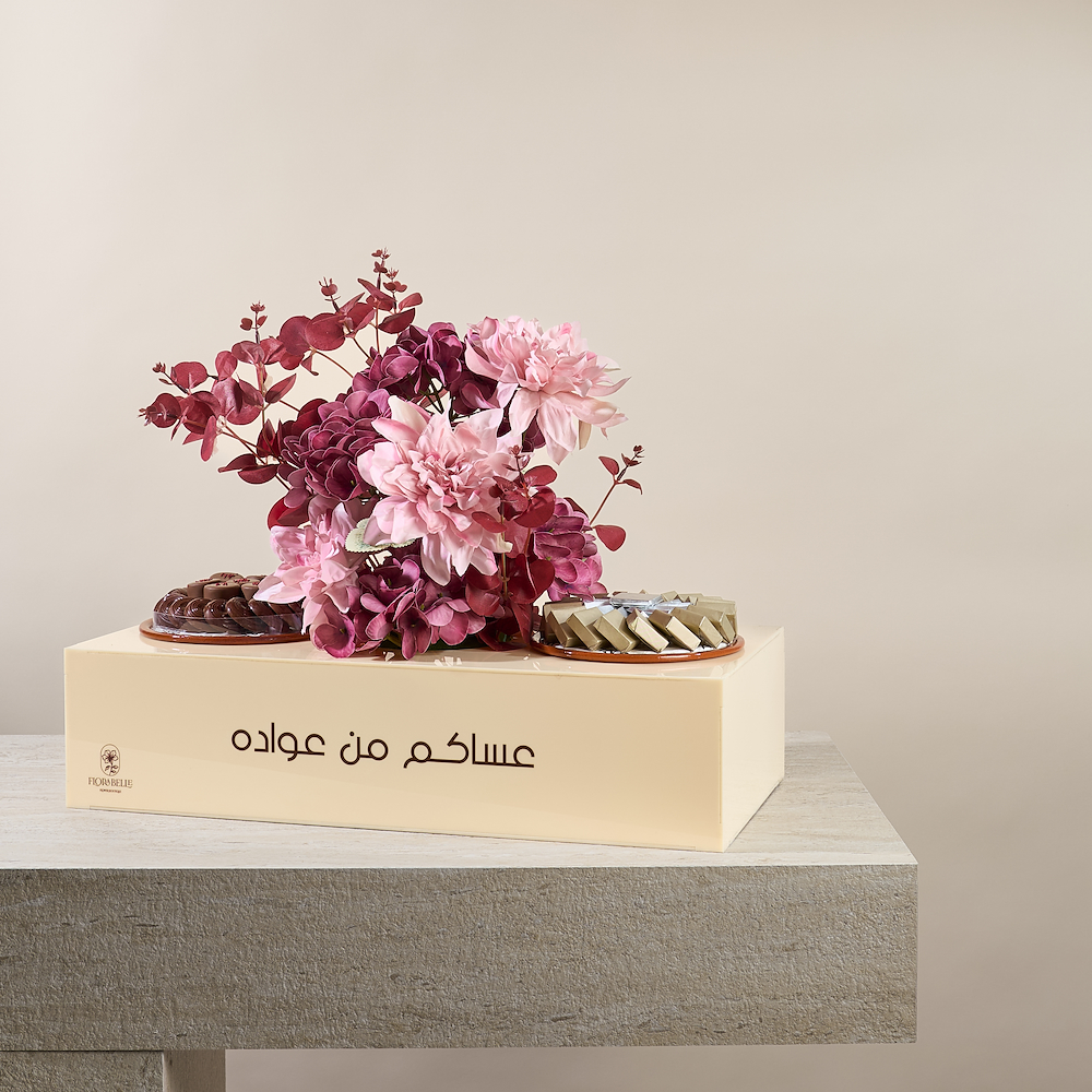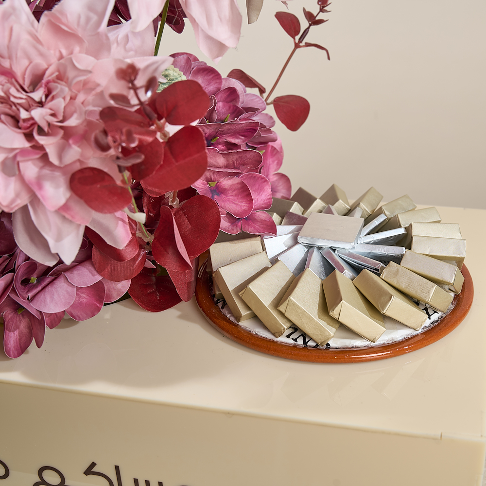 صندوق أكريليك بتصميم أنيق وفريد، يحتوي على زهور صناعية دائمة تتميز بجودتها العالية ومظهرها الطبيعي، لتضيف لمسة جمالية راقية تدوم طويلاً في أي مكان. كما يضم تشكيلة من 650 جرام من الشوكولاتة البلجيكية المغلفة والشوكولاتة السويسرية الفاخرة المعروفة بجودتها العالية ومذاقها الغني ليكون هدية مثالية تضيف لحظات من السعادة مع أحبائك.