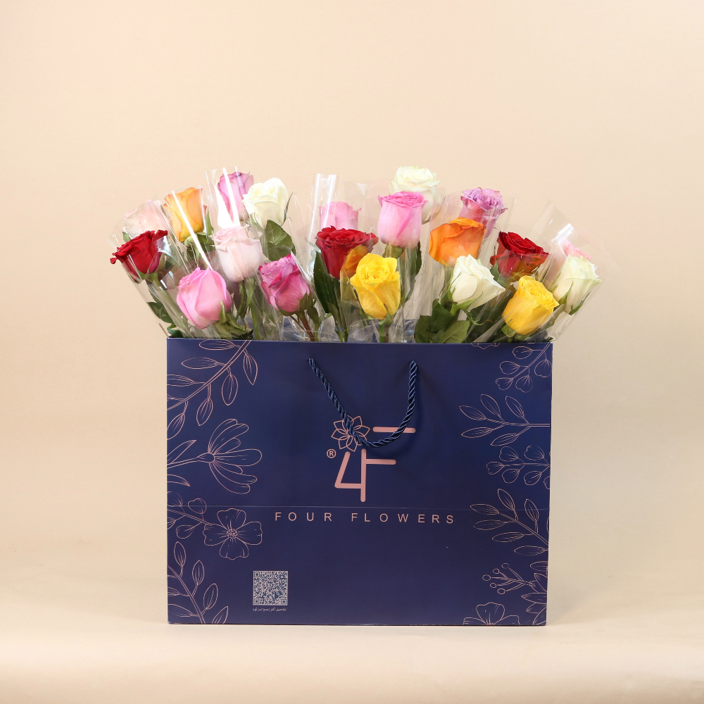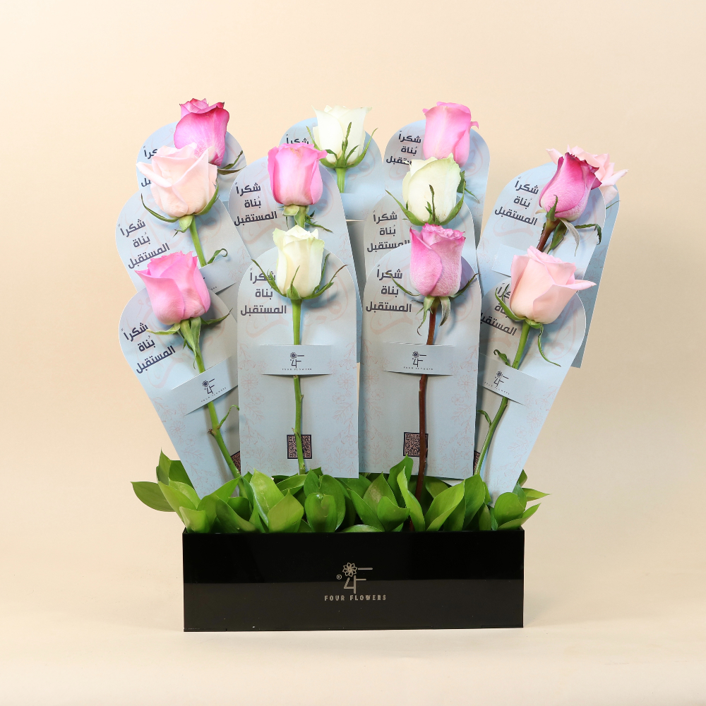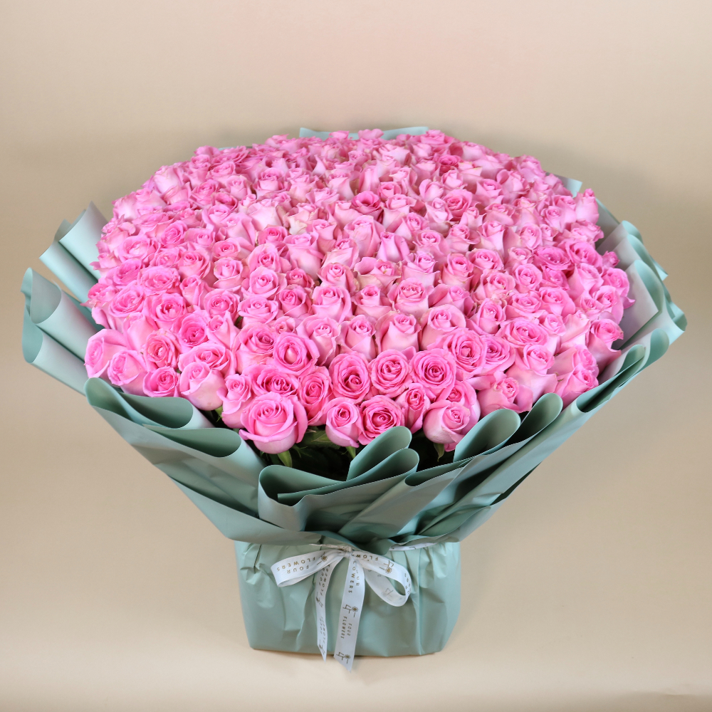 باقة يد كبيرة فاخرة بقاعدة تحتوي على 100 زهرة جوري.