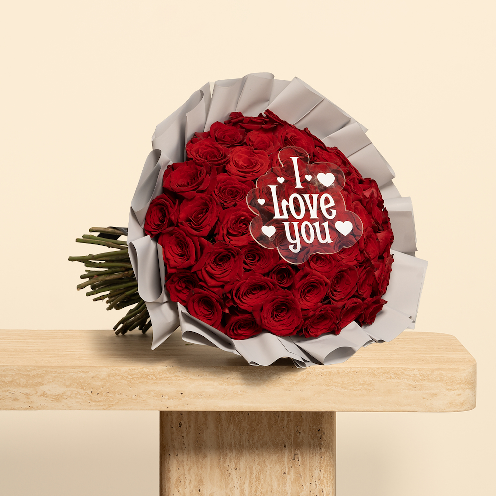 علبة من الأكريليك تحتوي على كيكة، مزينة بأجود انواع الجوري وزهرة سمبيديوم مع عبارة ليوم الميلاد.