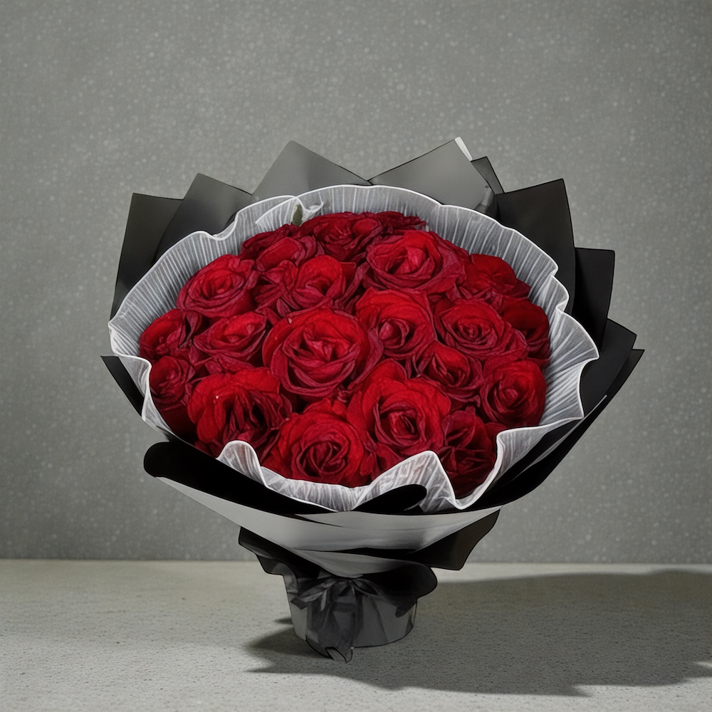 باقة تحتوي على 50 من أزهار الجوري الأحمر الفاخرة.