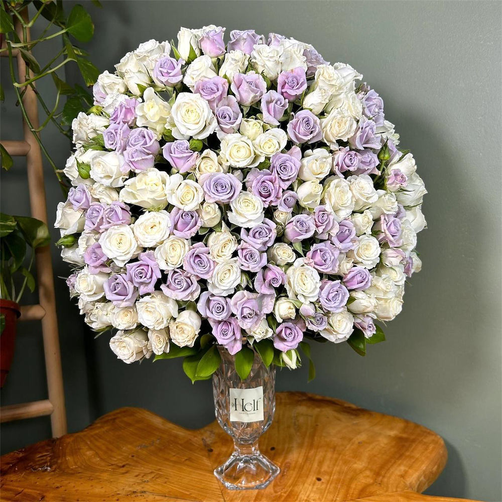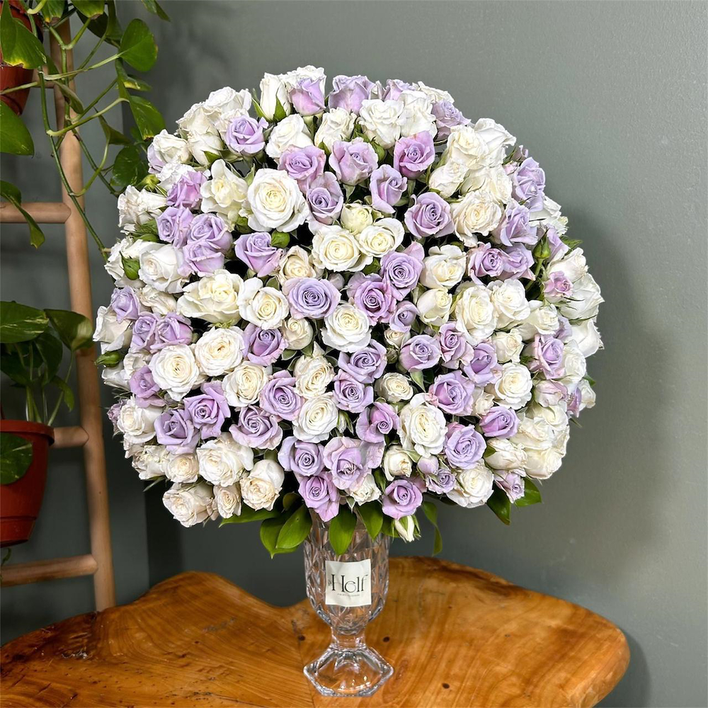 فازة فاخرة مليئة بأزهار البيبي روز الجميلة.