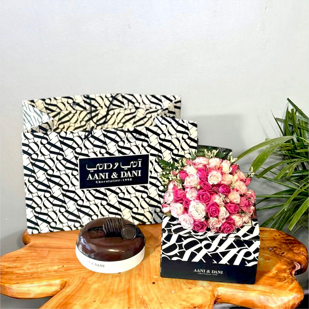 صندوق يحتوي على الجوري مع كيكة من آني وداني.