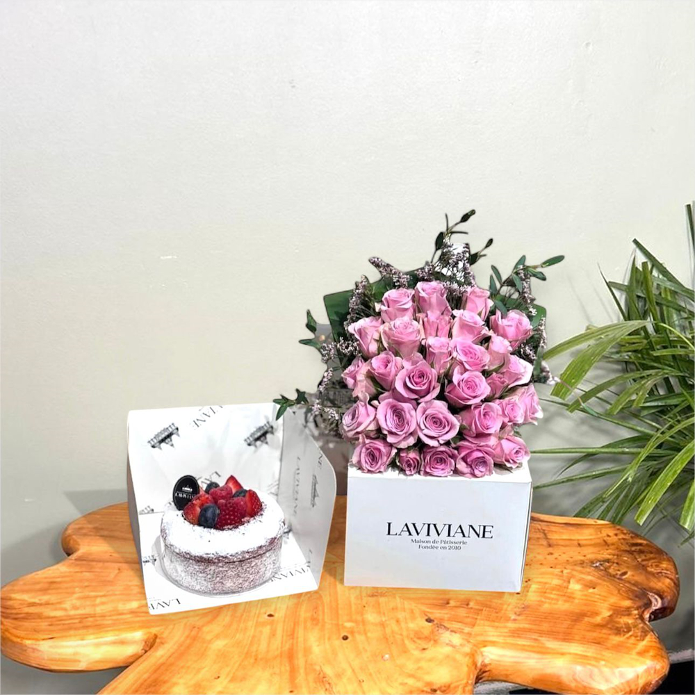 صندوق يحتوي على الجوري مع كيكة من لافيفيان.
