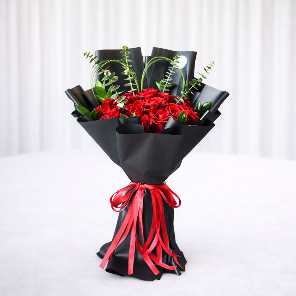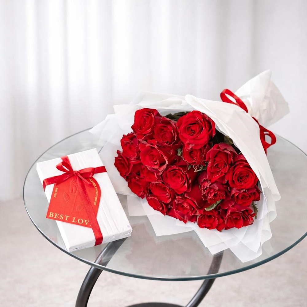 حقيبة أكريليك متوسطة الحجم تحتوي على فازة من زهور الجبسوفيلا، مبخر إلكتروني مغلف والشوكولاتة من بستاني.