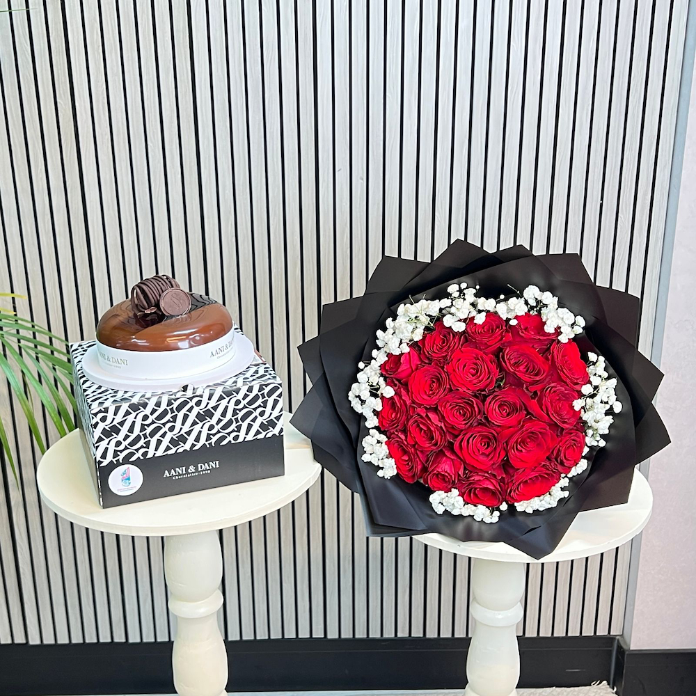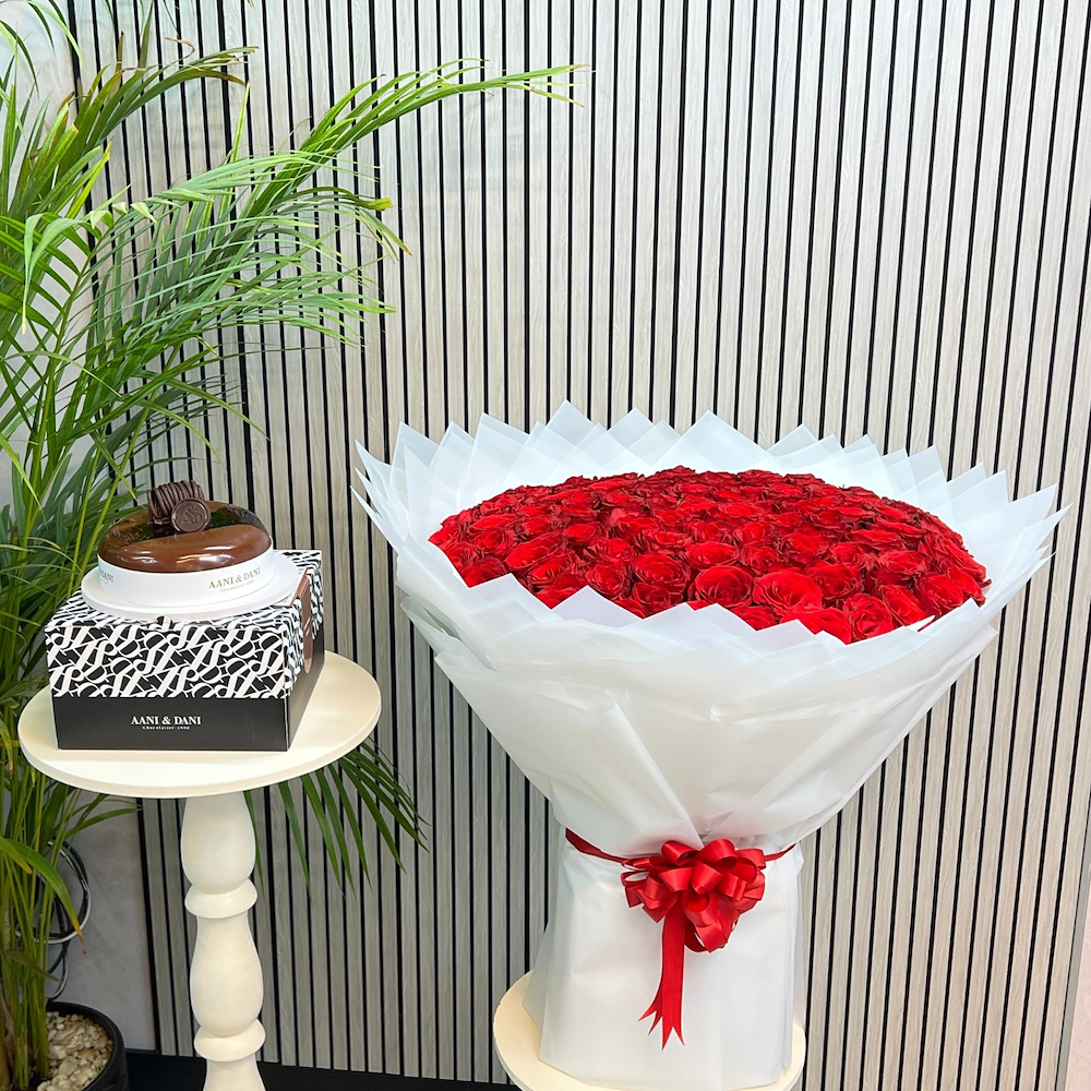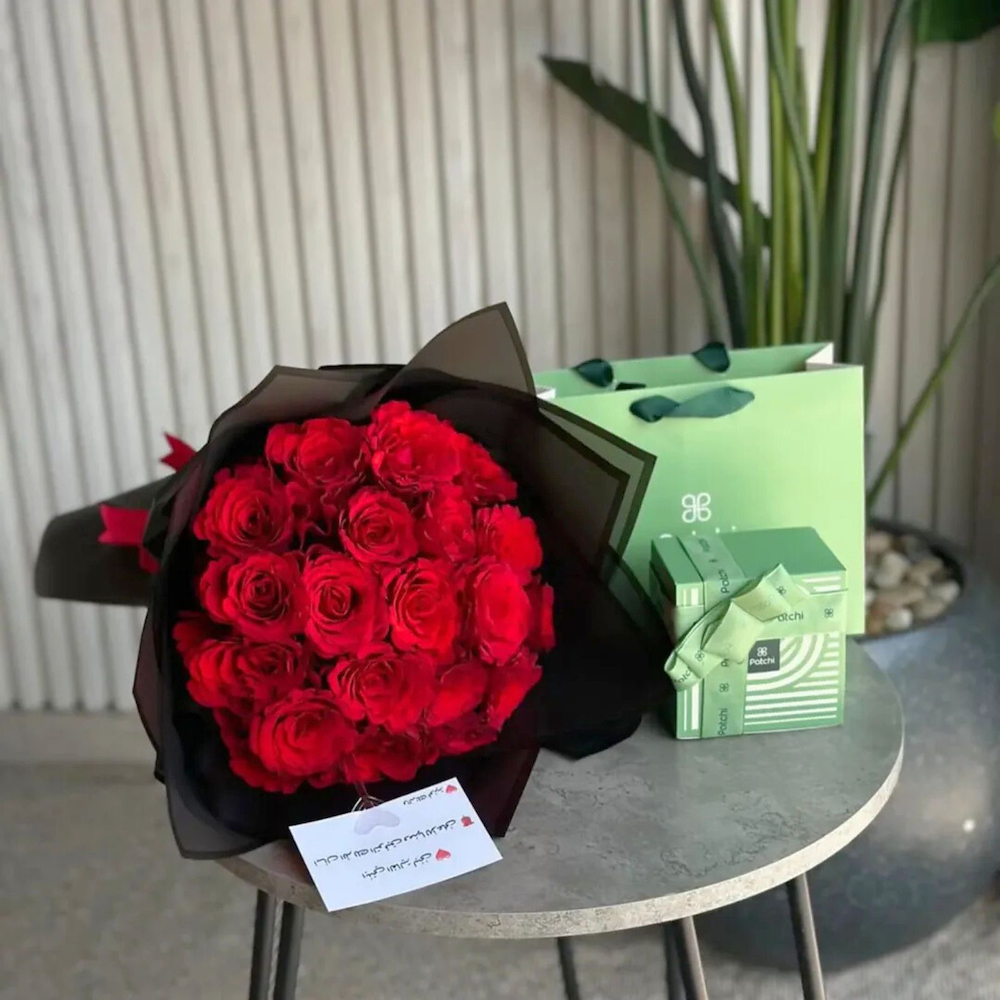 فازة مصممة بشكل جميل مع الجوري الأحمر.