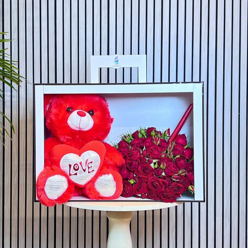 فازة تحتوي زهور الييبي جوري مع شوكولاتة من هانوفيرين.