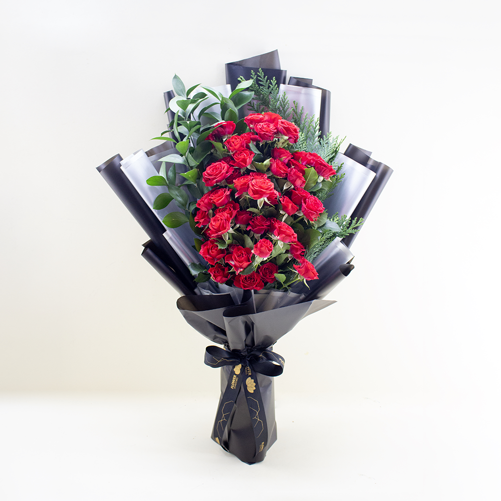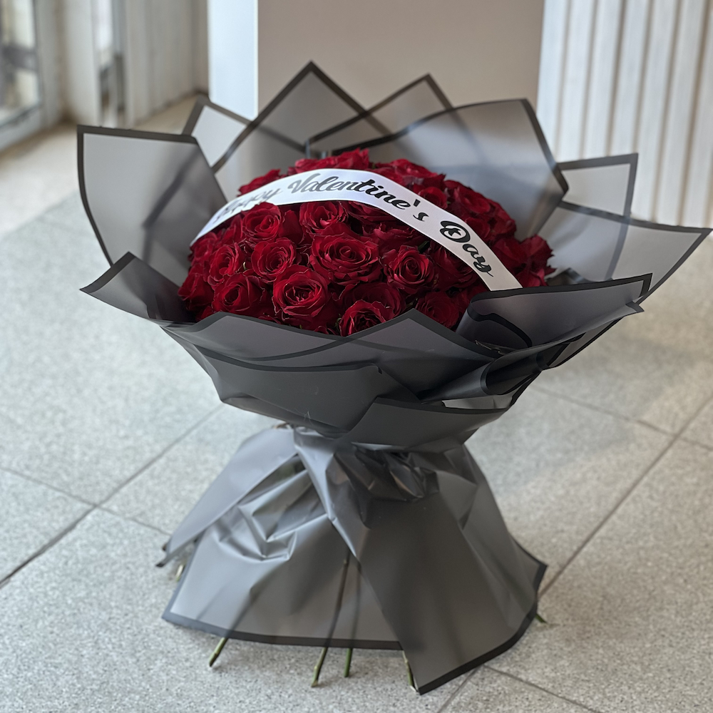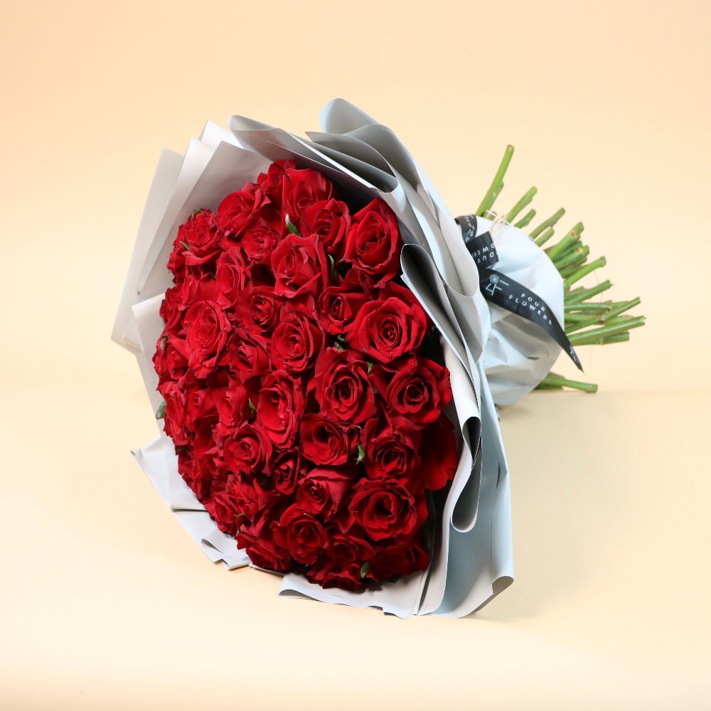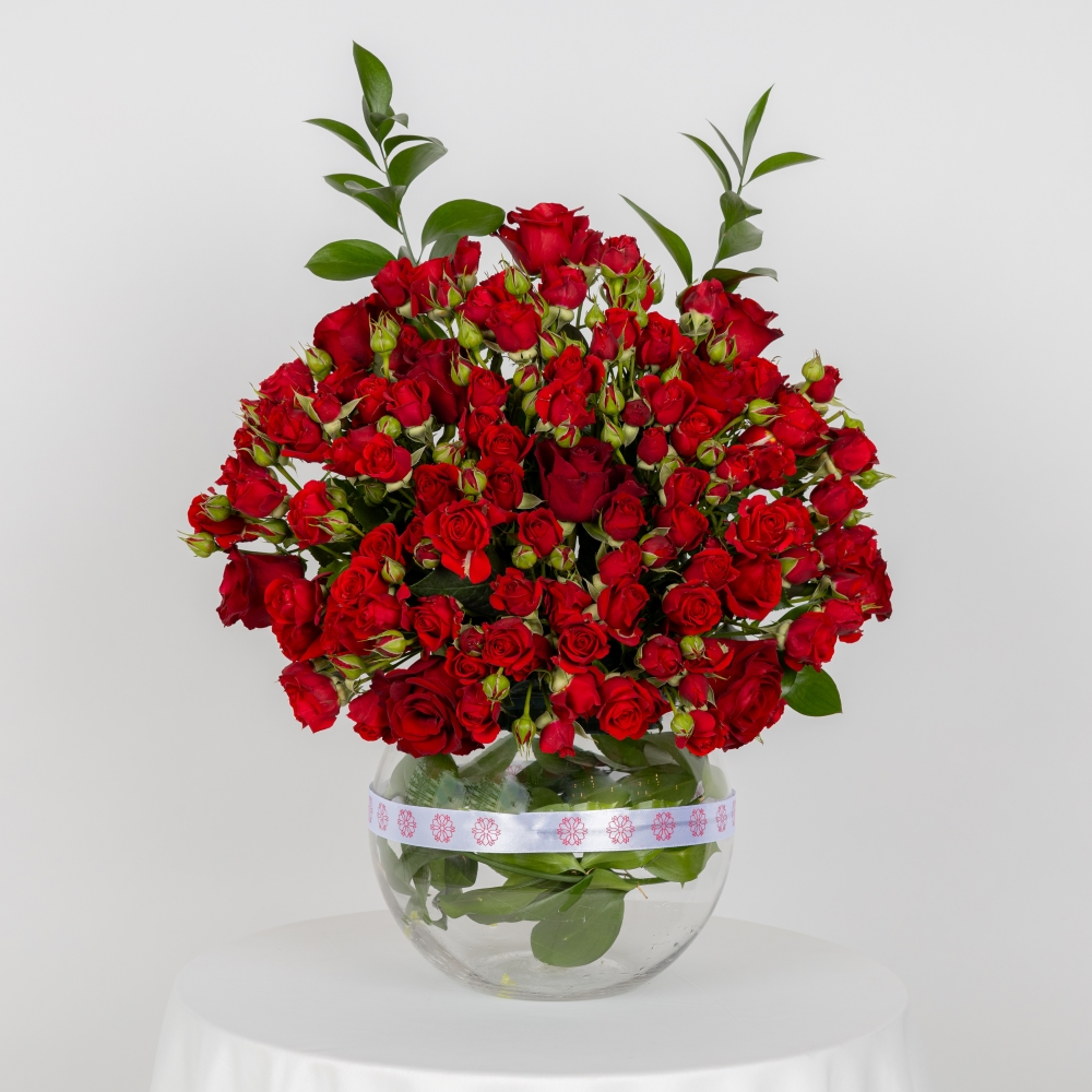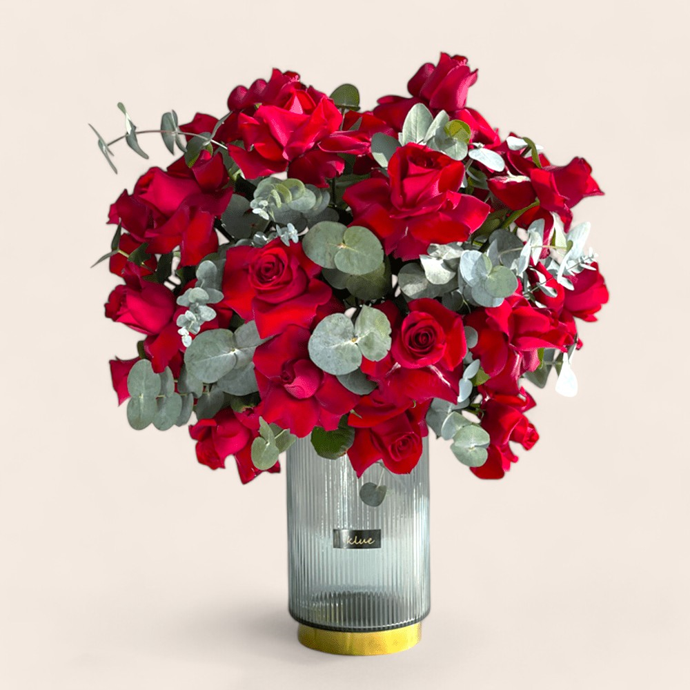 فازة أنيقة تحتوي على زهور الجوري الحمراء.