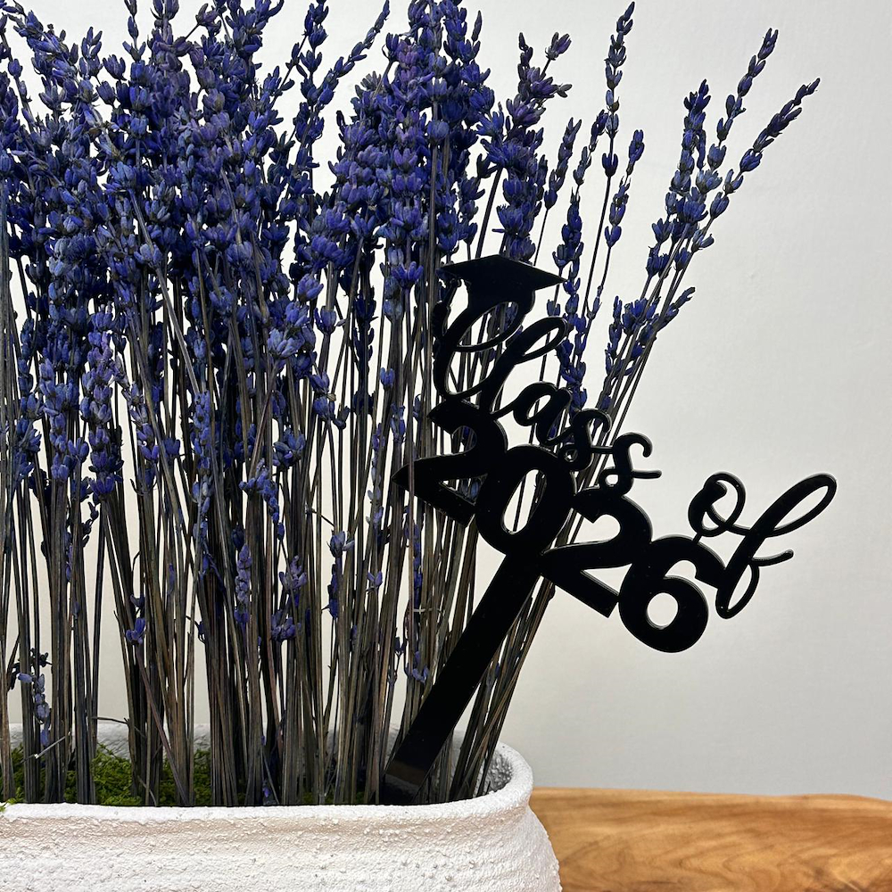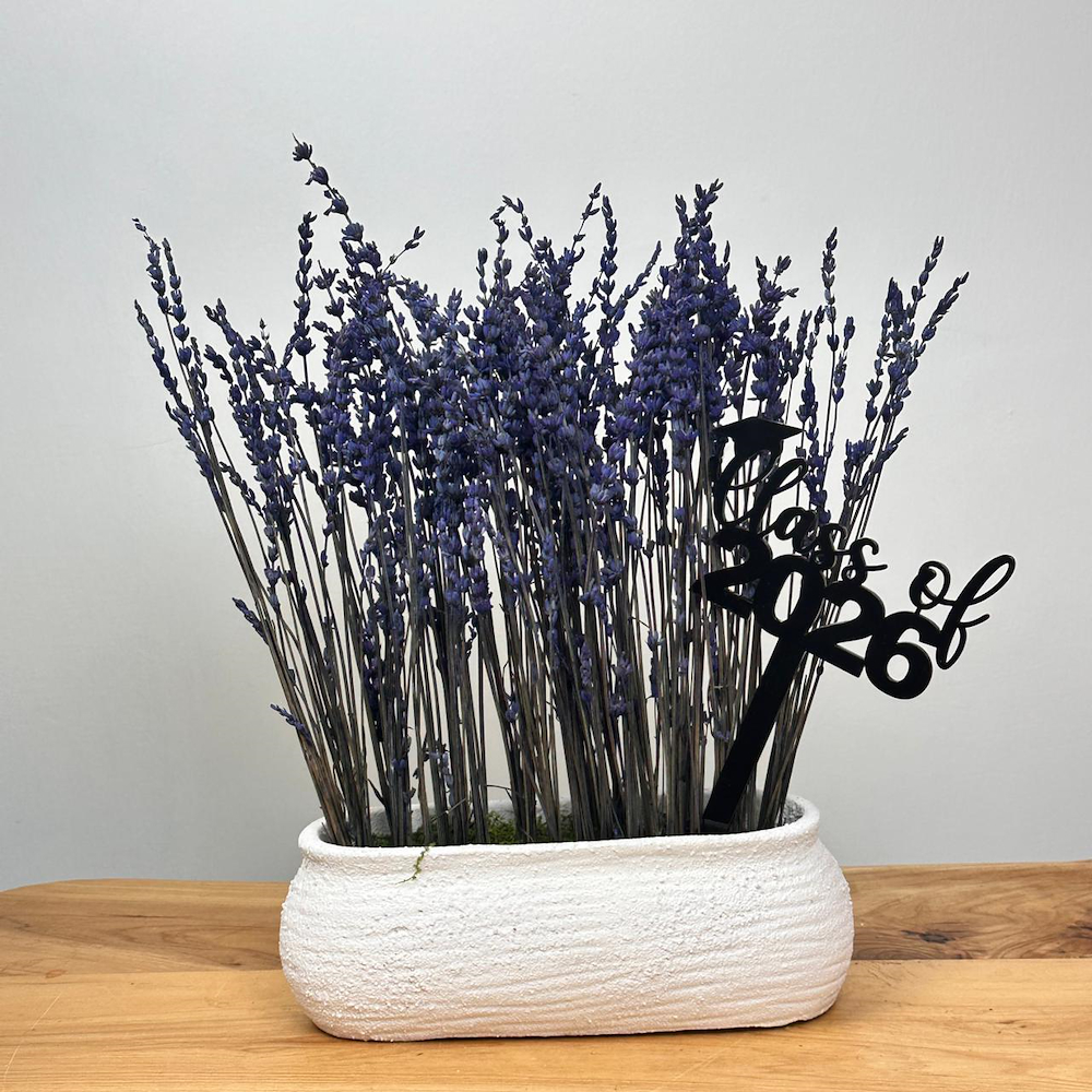 فازة أنيقة مزينة بلافندر طبيعي مجفف يدوم لأكثر من عام، مع تغريسة أكريليك.