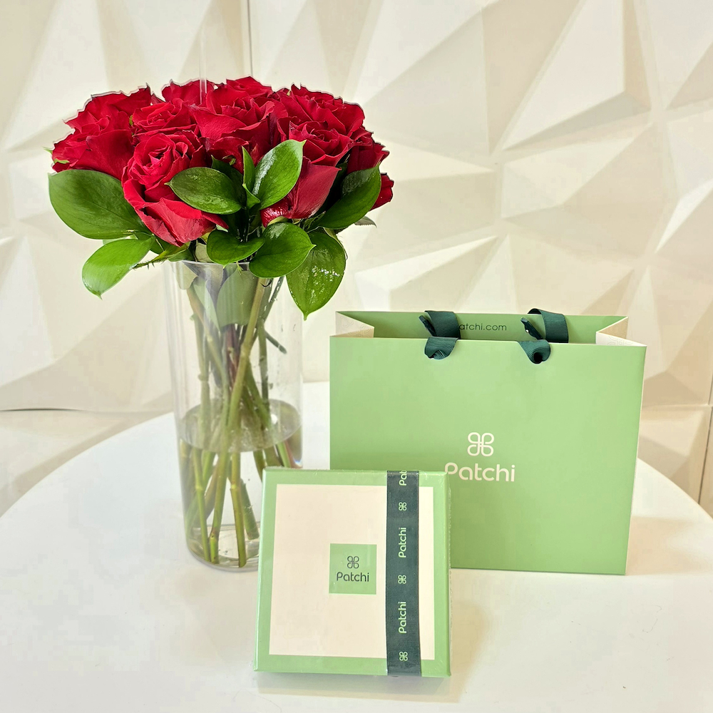 فازة تحتوي على الجوري الأحمر مع الشوكولاتة من باتشي.