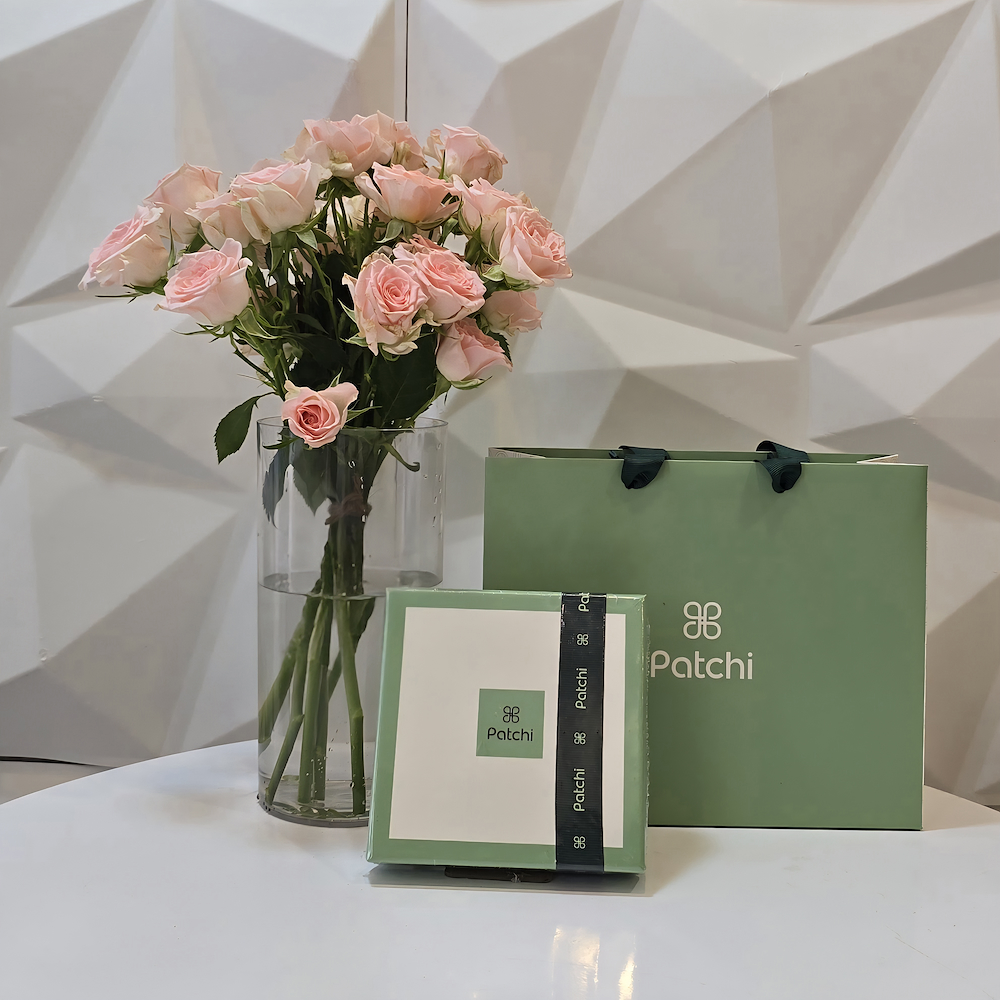 فازة تحتوي على البيبي جوري الوردي مع الشوكولاتة من باتشي.