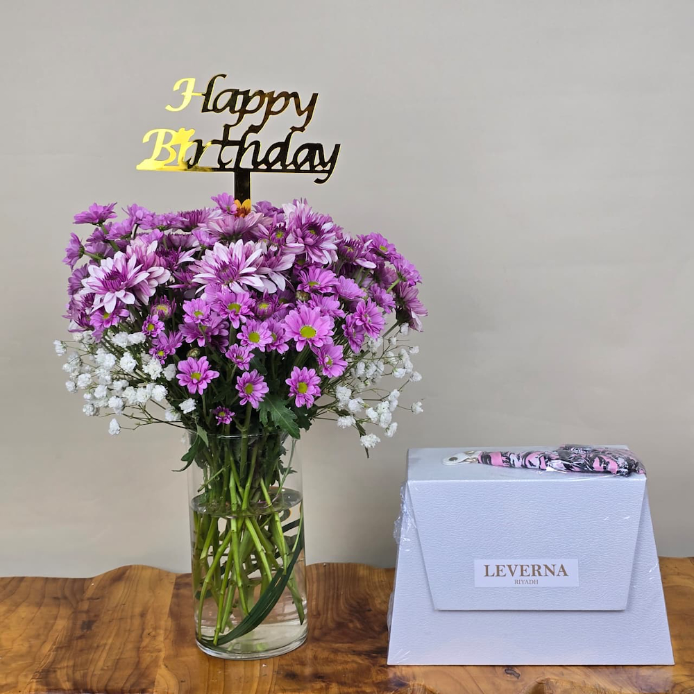 فازة مليئة بأزهار الكريز مع مجموعة من عطرين من ليفيرنا.