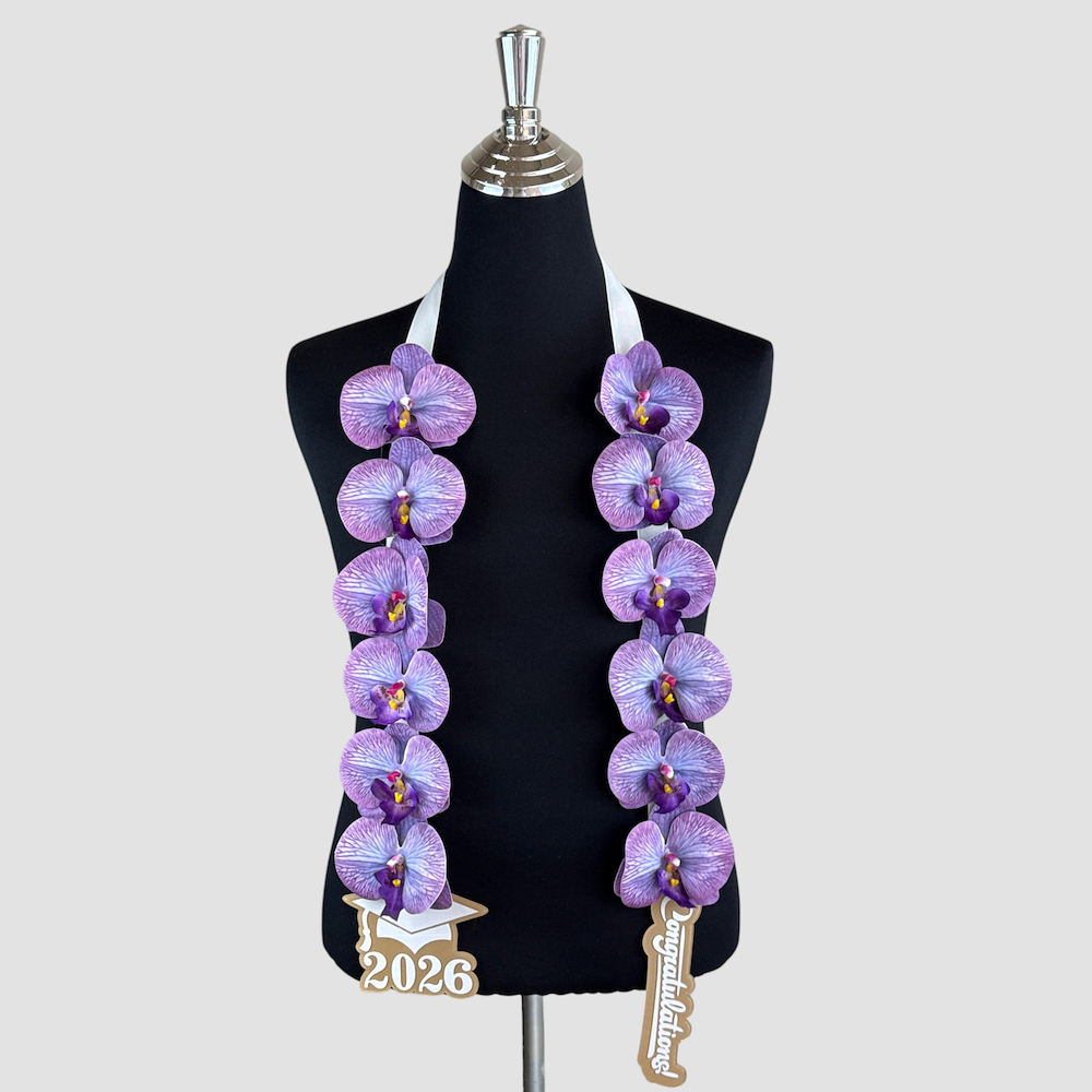 وشاح تخرج فاخر يجمع بين أناقة الأوركيد الصناعي وشريط الساتان الأبيض، مزين بعبارات تهيئة وسنة 2026. تصميم عصري ومميز يضفي لمسة ملكية فريدة على إطلالة الخريج في يومه الكبير.