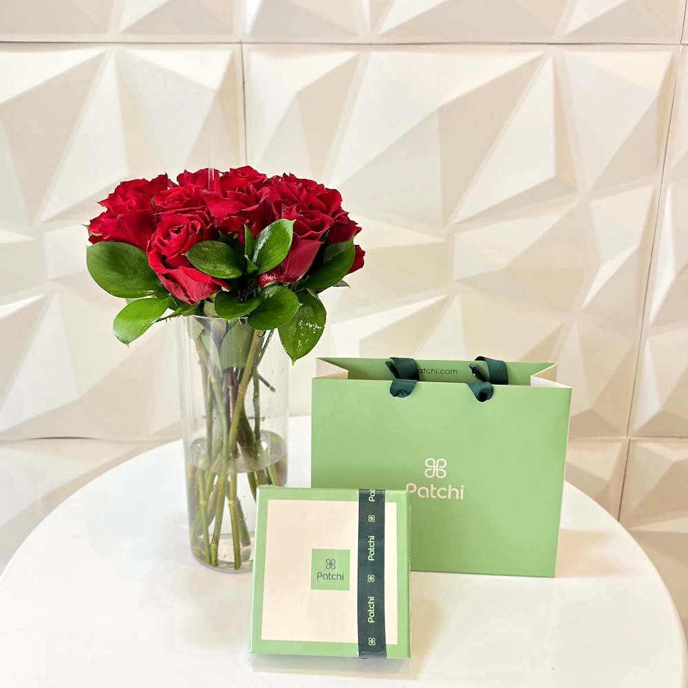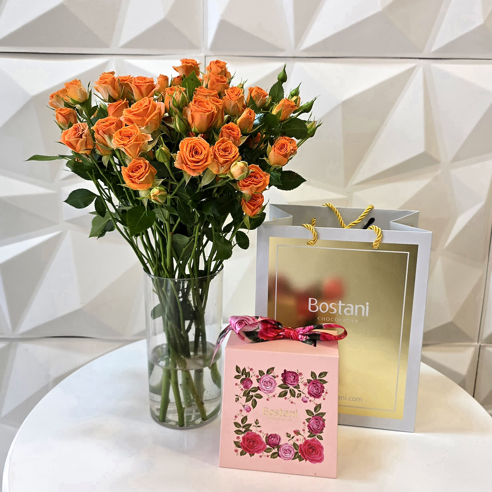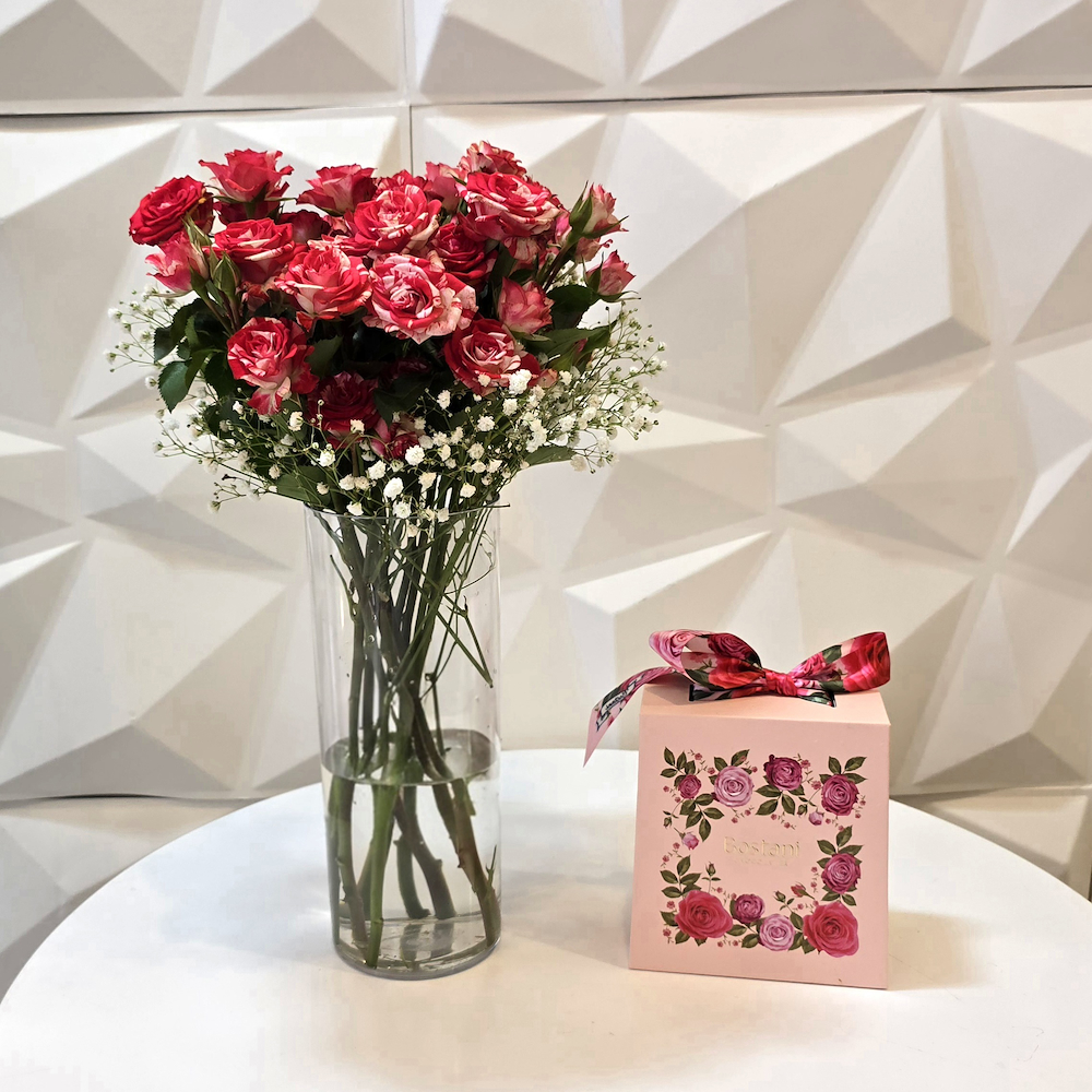 فازة تحتوي على الجوري الأحمر مع الشوكولاتة من باتشي.