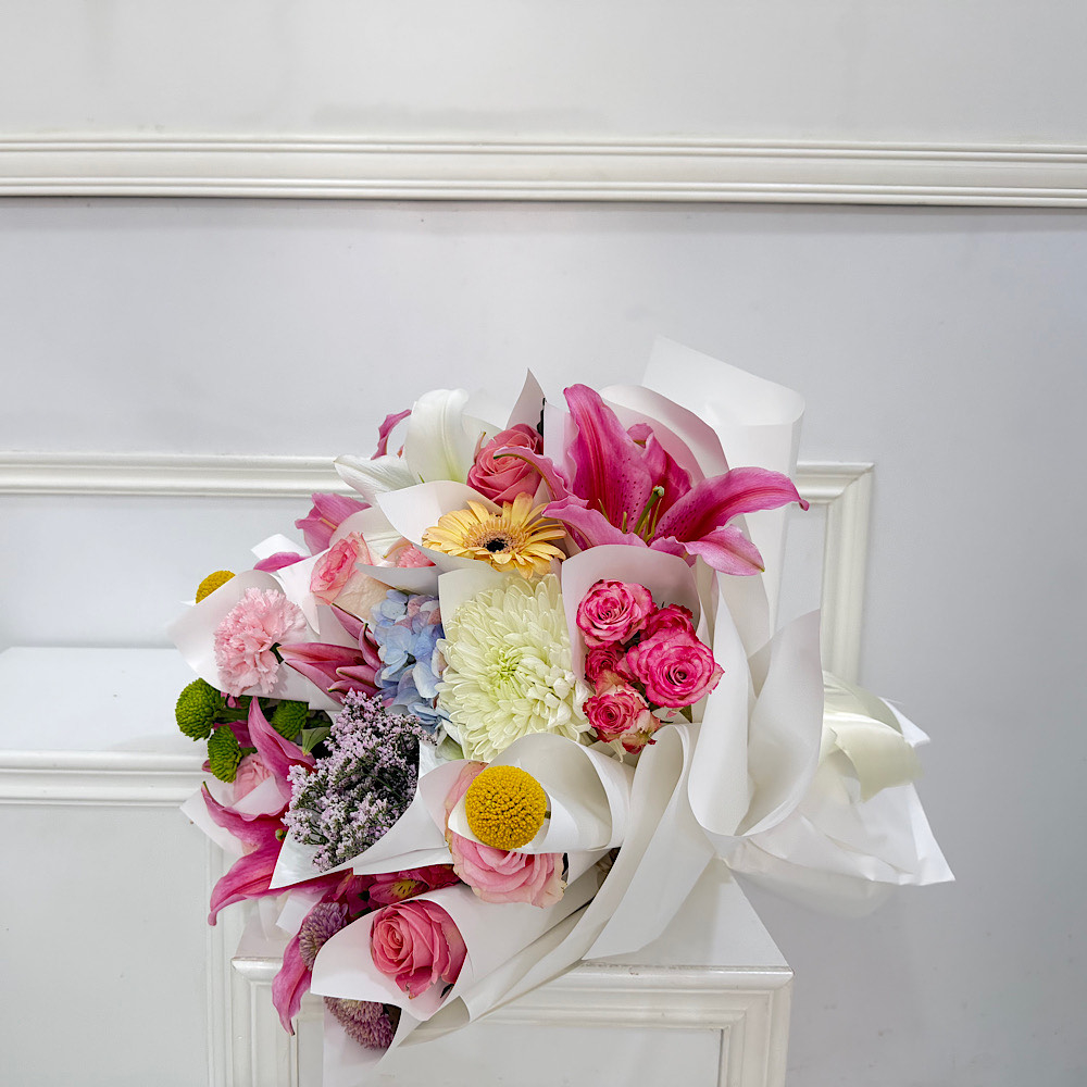 فازة تحتوي على زهور الجبسوفيليا منسقة مع سمكة الفايتر.