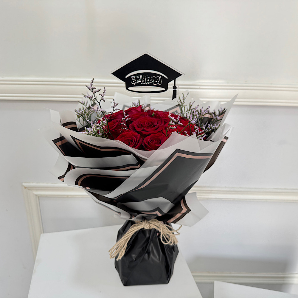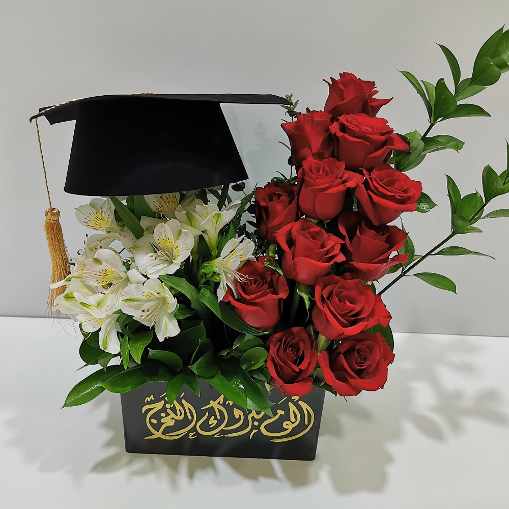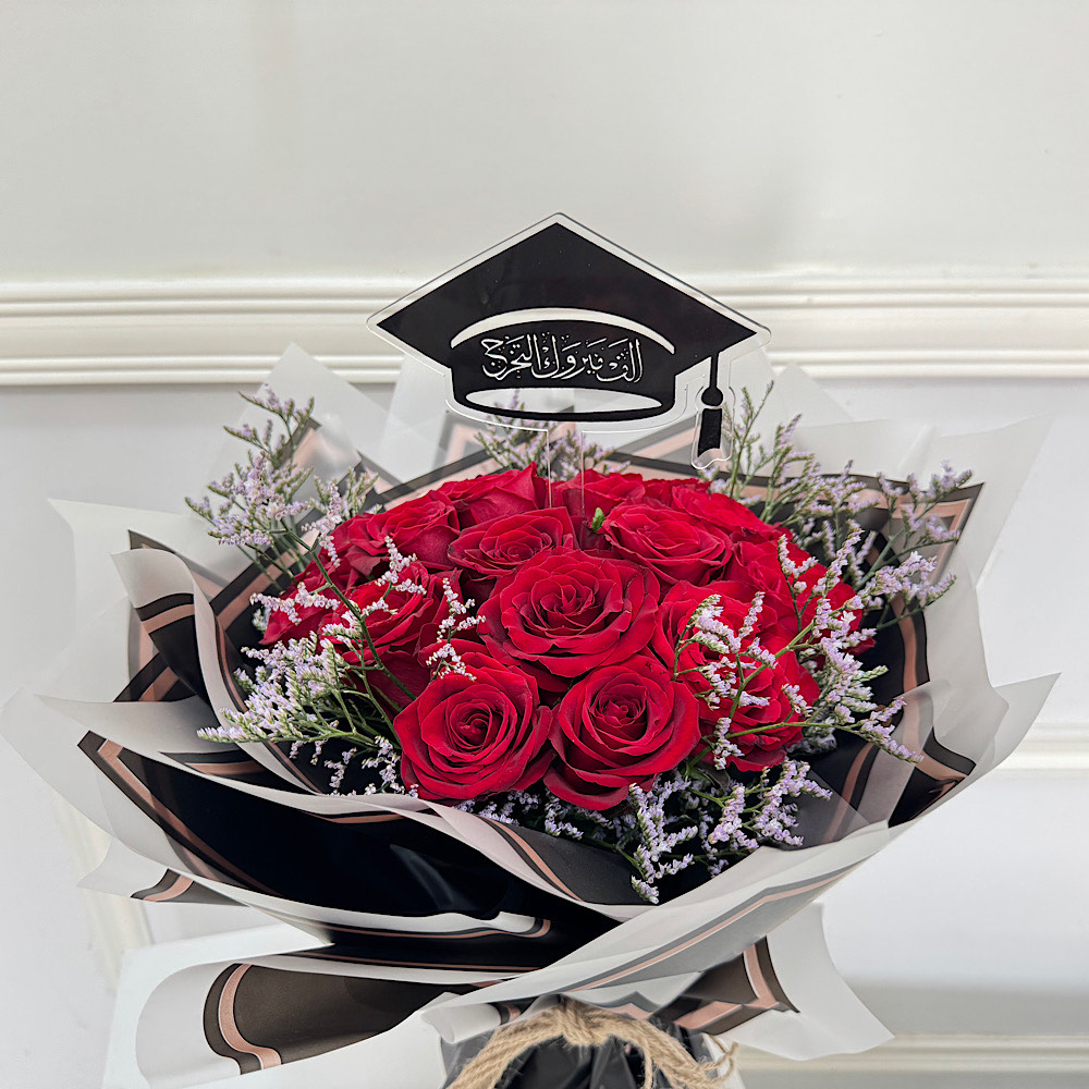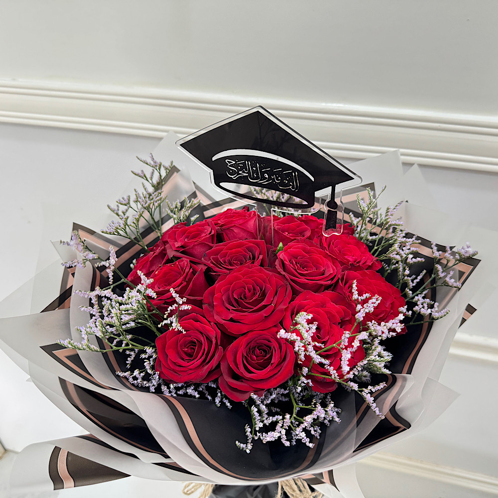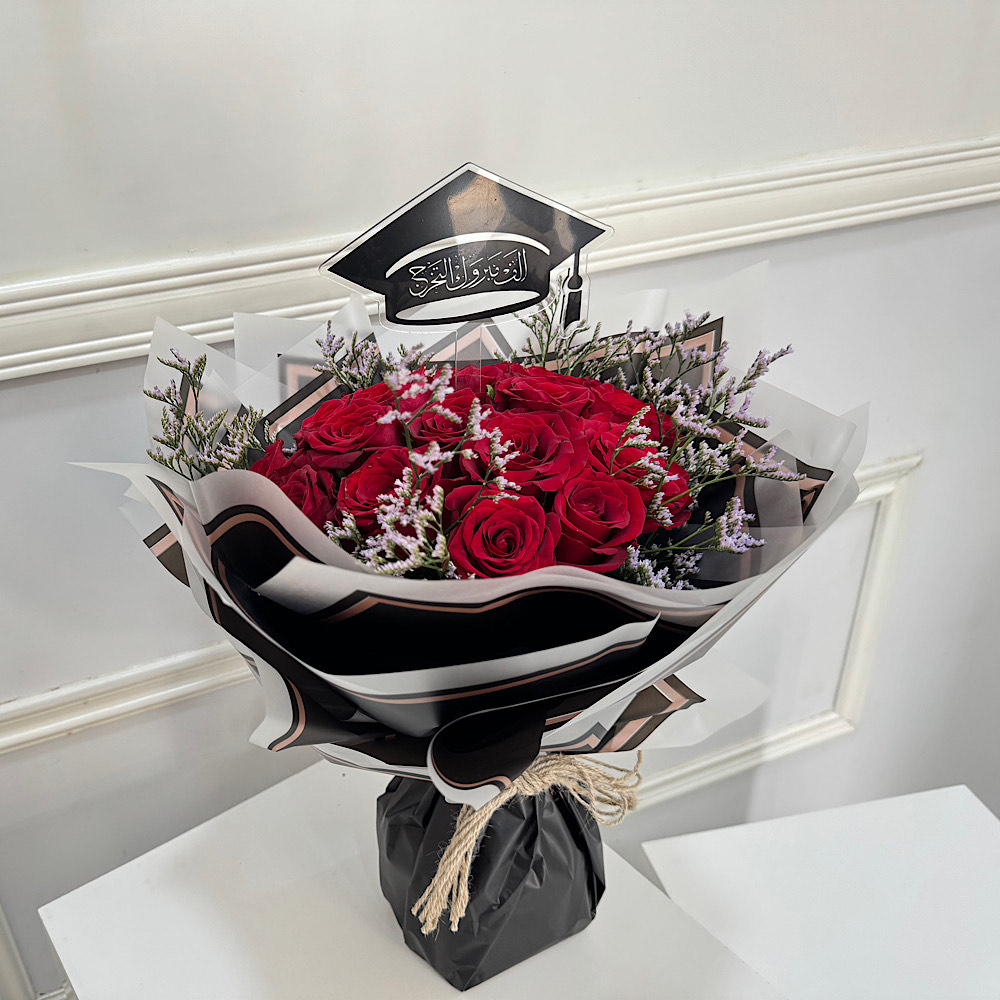 مجموعة ورد جوري احمر مع تغريسة التخرج.