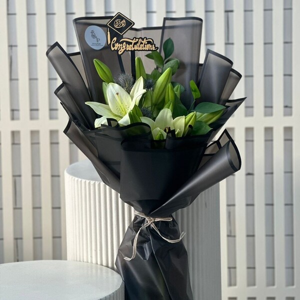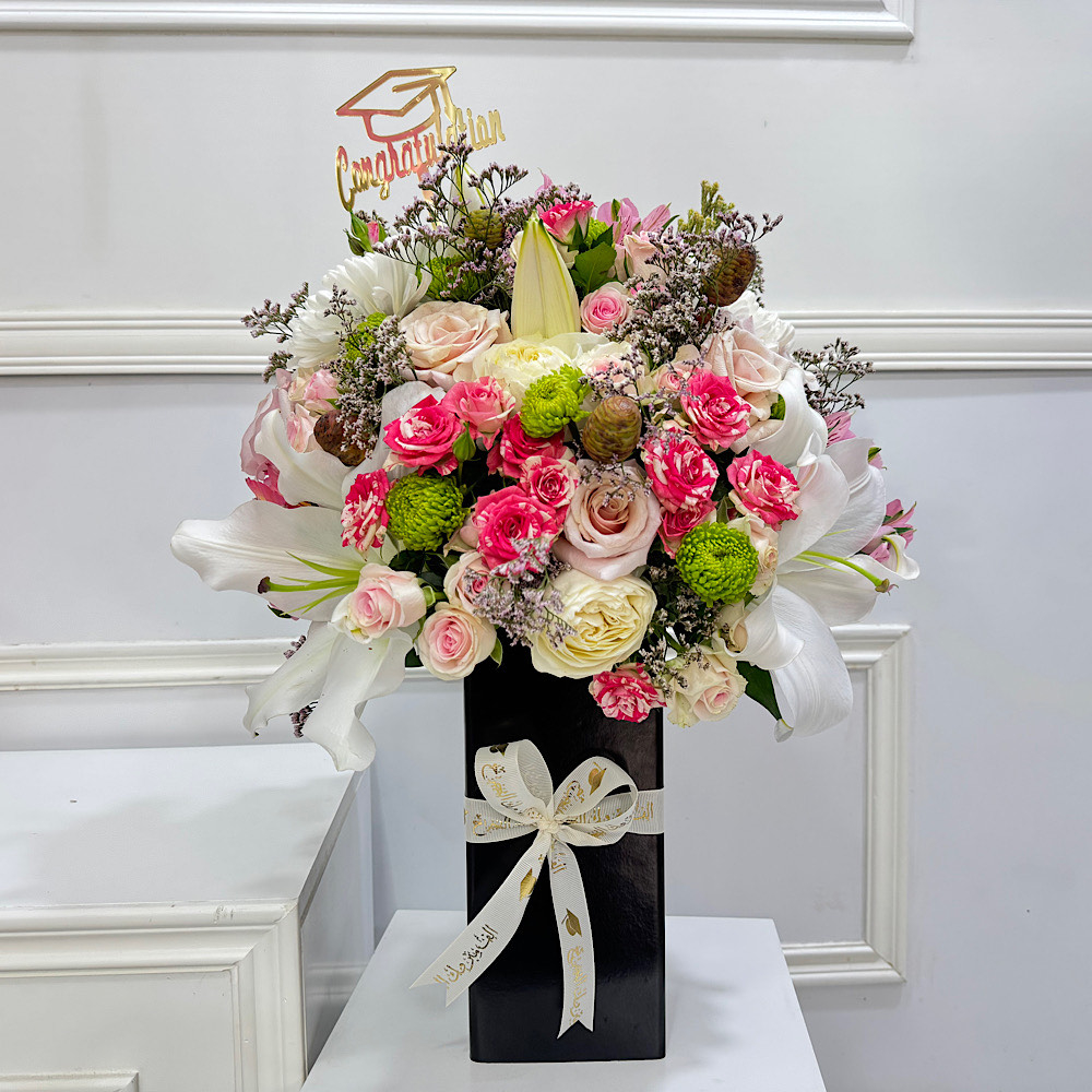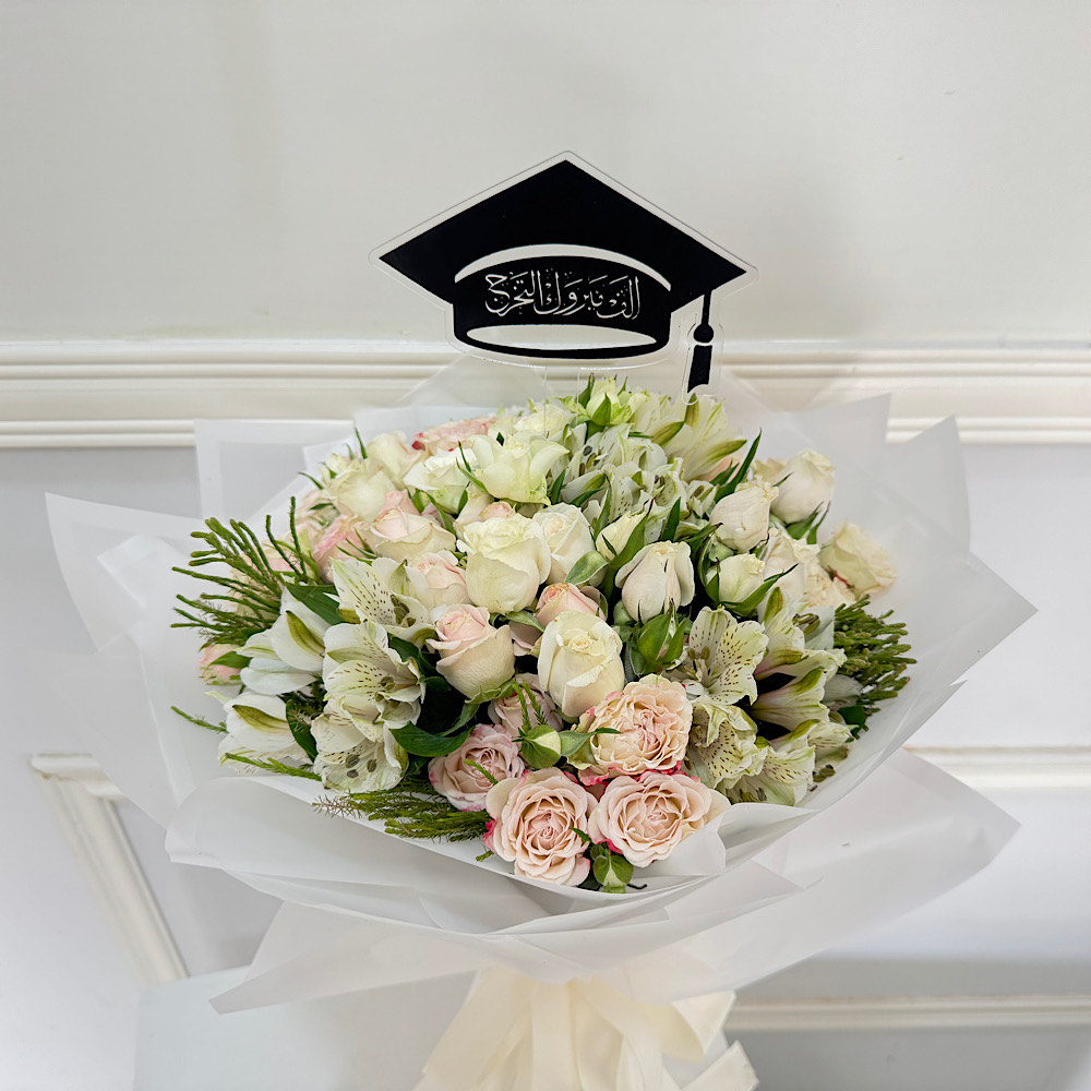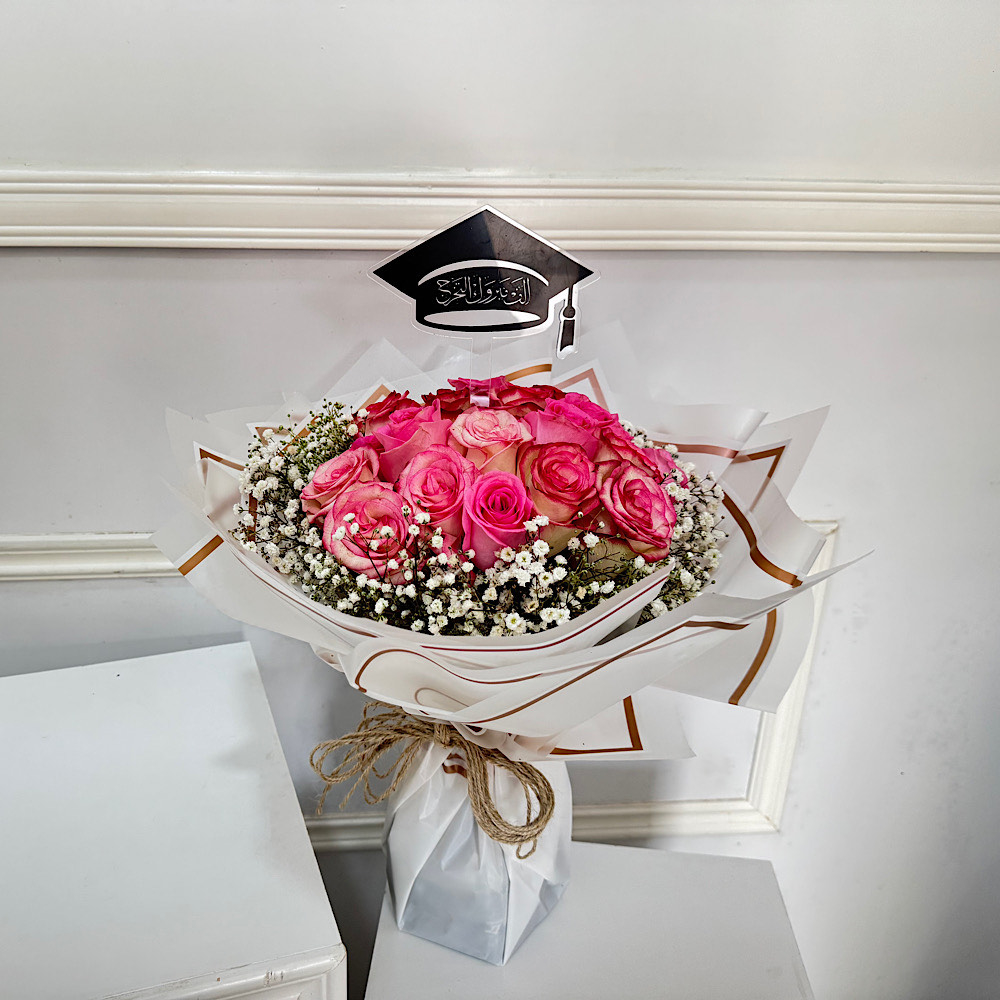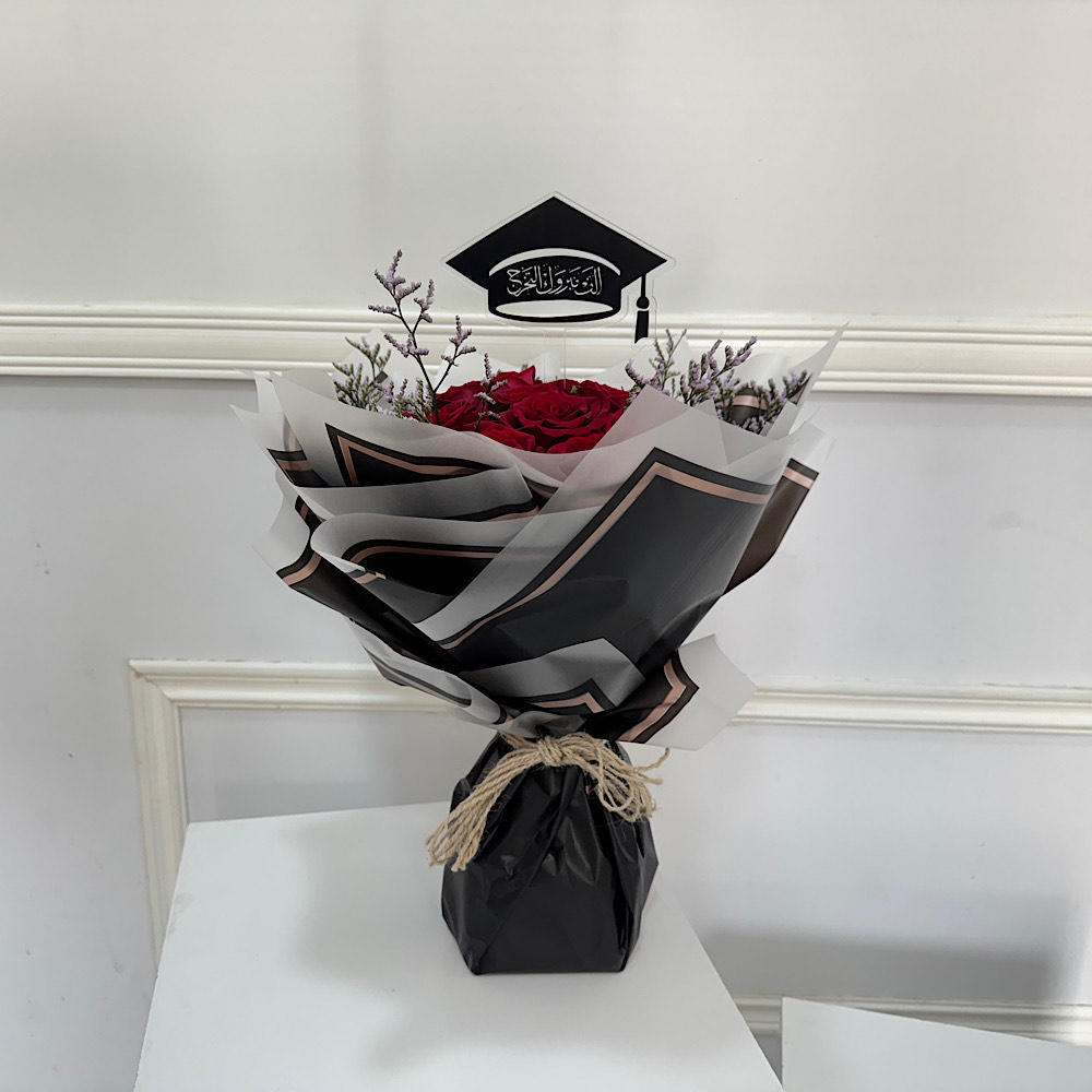مجموعة ورد جوري احمر مع تغريسة التخرج.