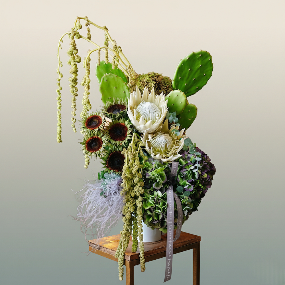 فازة تحتوي على البروتيا، السن فلاور، الهايدرنجا واليوكالبتوس.