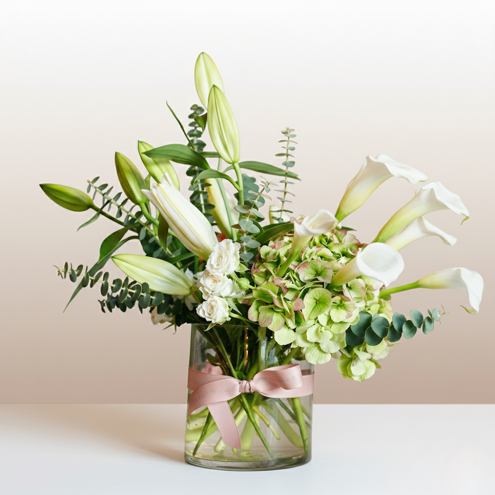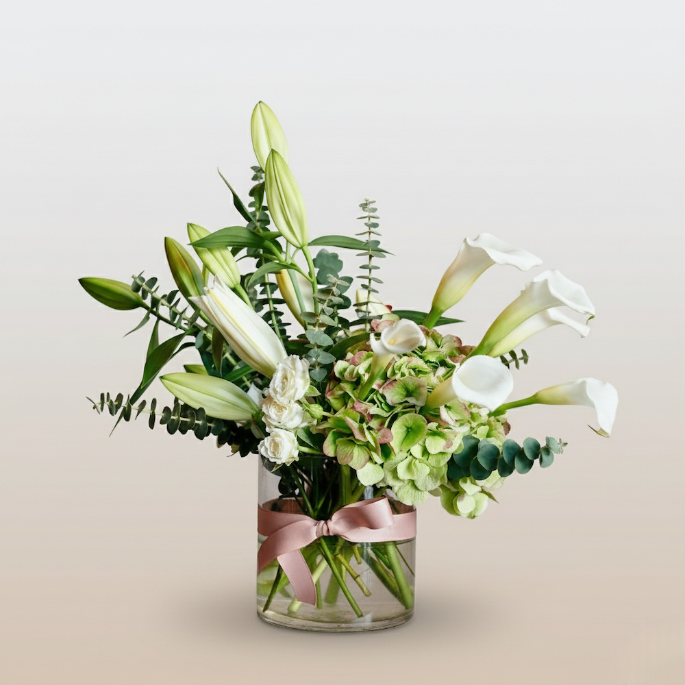 فازة تحتوي على الجوري، الكالا ليلي والليليز.