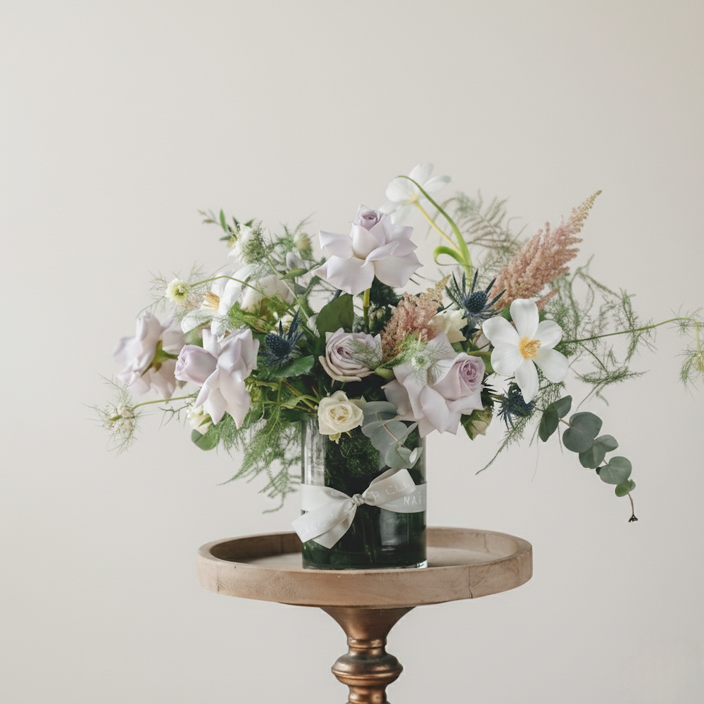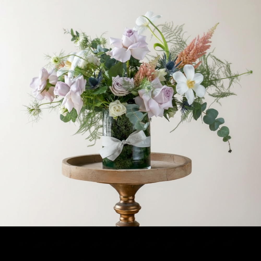فازة تحتوي على الجوري، التوليب واليوكالبتوس.