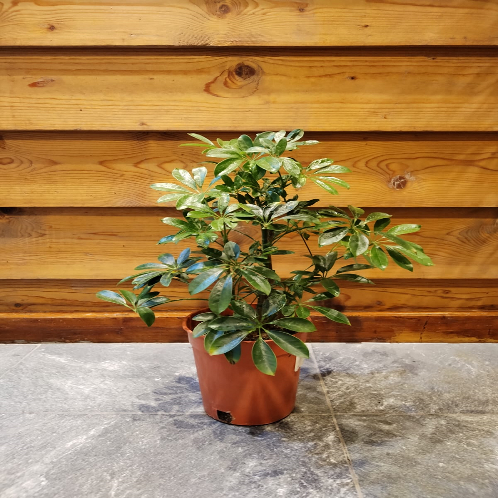 شجرة المظلة (شفليرا) نبتة زينة داخلية مميزة، تشتهر بأوراقها اللامعة التي تشبه المظلة، والتي تضفي لمسة منعشة وأنيقة على أي مكان. سهلة العناية، قابلة للتكيف، ومثالية للمنازل والمكاتب التي تبحث عن نباتات خضراء دون عناء. إرشادات العناية: تفضل الإضاءة الساطعة غير المباشرة، ولكنها تتحمل الإضاءة المتوسطة. تروى عندما تجف الطبقة السطحية من التربة (حوالي 2.5 سم)، وينصح بتجنب الإفراط في الري لمنع تعفن الجذور. استخدم تربة جيدة التصريف، واحفظها في مكان دافئ بعيدًا عن تيارات الهواء الباردة. قم بتسميدها شهرياً خلال فصلي الربيع والصيف للحصول على أفضل نمو.