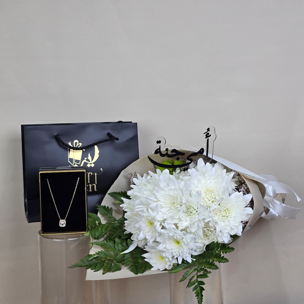 باقه تحتوي علي أزهار الكريز مع قلادة زريكون.