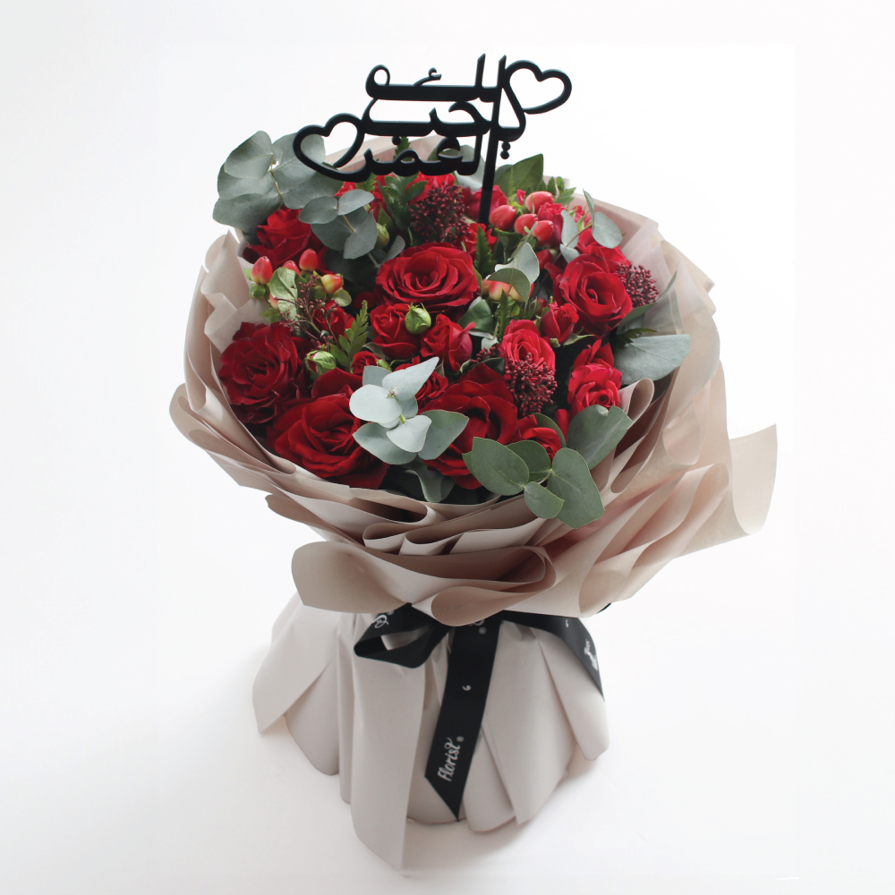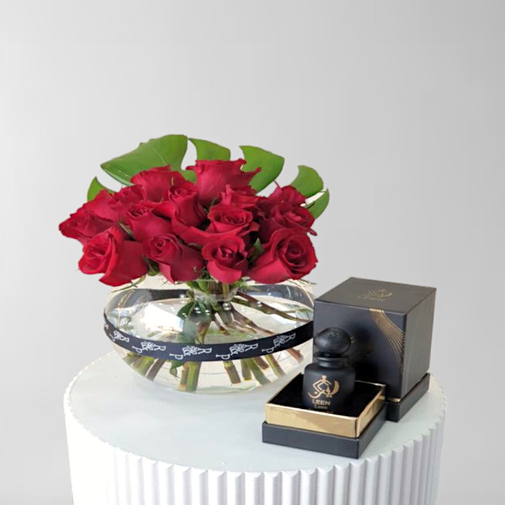فازة من الجوري باللون الأحمر مع عطر لين.